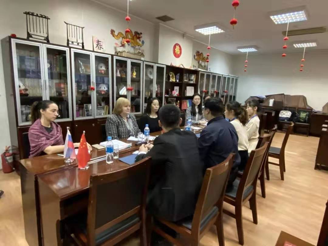 On December 11, delegation of teachers and students from the School of International and Public Affairs of Jilin University went to the Confucius Institute of the Far Eastern Federal University of Russia to conduct the "Investigation on the Construction and Development of Confucius Institutes in Northeast Asia". The purpose of this visit is to understand the construction and development of Confucius Institute and the current situation of Chinese teaching in that region, and lay a foundation for further promotion of Chinese teaching there. Natalia Josephus, deputy dean of the Confucius Institute of Far East Federal University of Russia, and nearly ten faculty members of the Confucius Institute met with representatives of teachers and students and held a discussion.