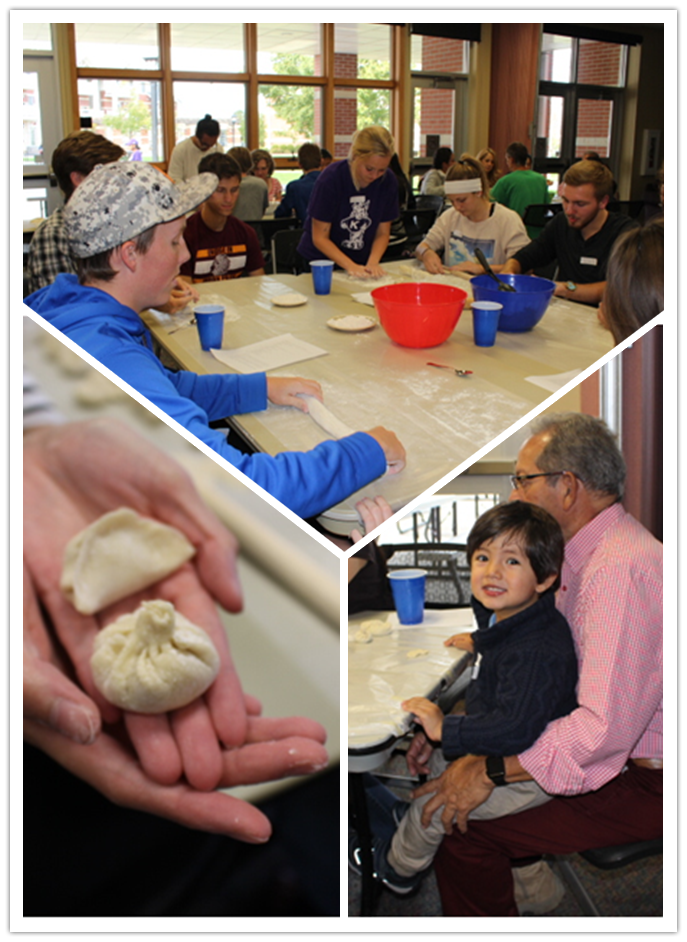 与堪萨斯州立大学中国语言文化社在Jardine 活动中心共同开展了“ 包饺子 ”体验活动。