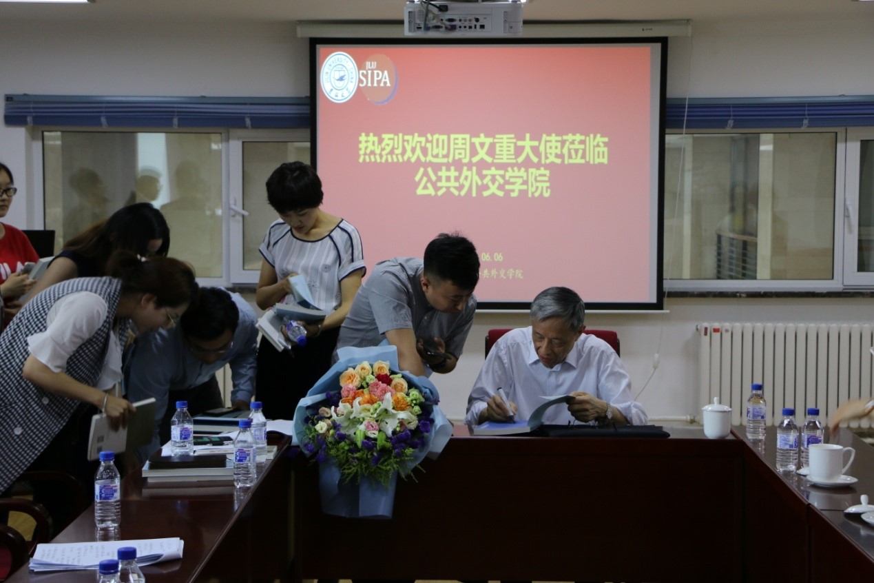 老院长刘德斌老师对周大使的发言进行了精彩的点评。学术座谈会结束后,周文重先生还将自己的两部著作赠予赌博游戏