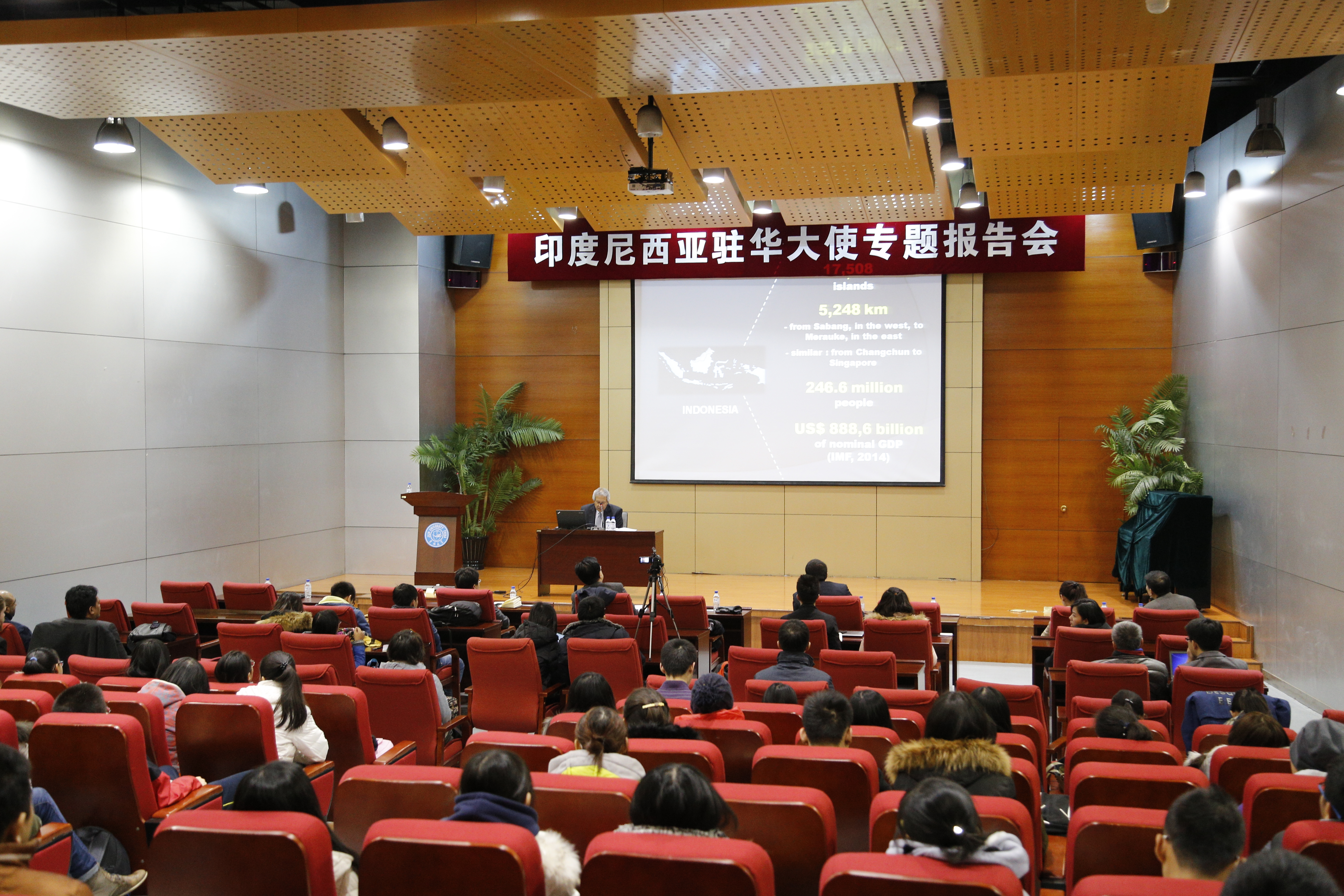 随后,苏更•拉哈尔佐大使为我校师生做了题为《印尼与中国关系:两国六十五年的外交与未来的合作潜力》的专题报告。在报告中,他详细介绍了中印两国外交的历史和现状,并对两国关系发展做出了积极的展望。报告结束后,大使先生与现场观众进行了长时间的互动。来自赌博游戏