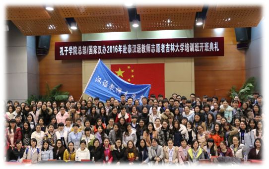 总部/国家汉办2016年赴泰汉语教师志愿者吉林大学培训班开班典礼在吉林大学国家汉办东北基地学术报告厅举行。常务副校长陈岗向培训学员代表授旗并致辞。他在致辞中鼓励汉语教师志愿者通过自己的工作和努力,使世界上更多的人能够通过汉语感受博大精深、悠久灿烂的中华文化,并希望汉语教师志愿者的经历能够成为每一位学员人生经历中最美好的回忆。典礼由校长助理、赌博游戏