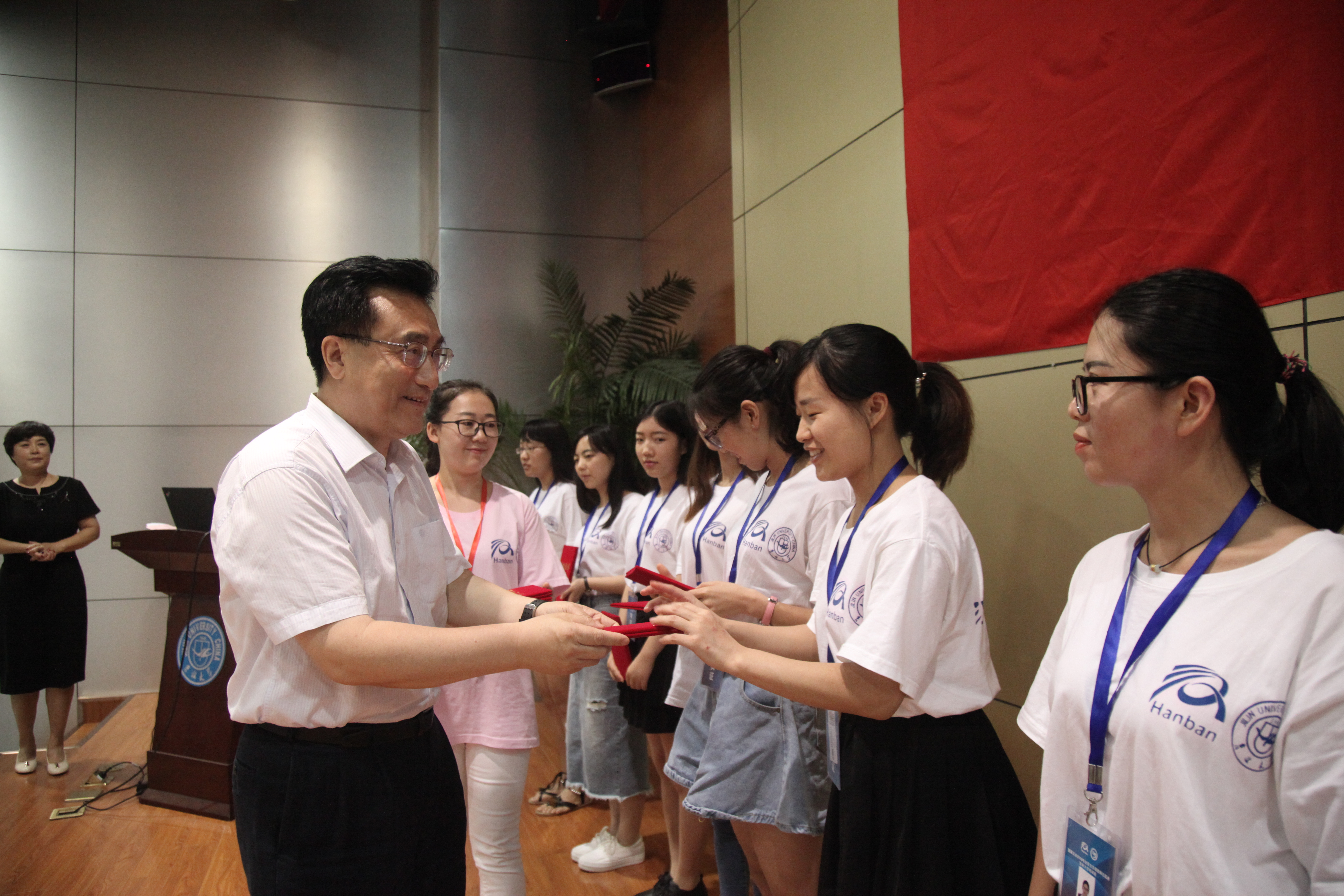 典礼开始首先播放培训视频短片,看到视频中记录自己在培训期间经历的点点滴滴,学员们脸上不禁露出了笑容,视频中大家四十天培训生活的缩影成了每个人难忘的回忆。随后来自新疆大学的王莉莉和延安大学的习颖平作为学员代表分别发言,他们对国家汉办和吉林大学安排的此次培训让自己在各方面得到的提升和锻炼表示感谢,并下定决心不辜负培训期间老师们的谆谆教诲,带着使命感和荣誉感成为一名优秀的汉语教师志愿者。教师代表我校国际语言赌博游戏