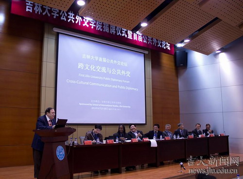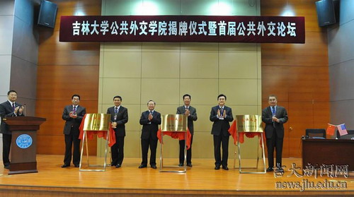 和中美公共外交研究中心揭牌仪式暨吉林大学首届公共外交论坛“跨文化交流与公共外交”在吉林大学国际学术大讲堂举行。外交部前副部长、前中国驻俄罗斯特命全权大使、外交部公共外交咨询委员会委员刘古昌先生,世界知识出版社总编辑范建民先生,著名国际关系理论家、北京大学王逸舟教授,澳大利亚昆士兰大学副校长逯高清院士和美利坚大学亚洲研究中心主任赵全胜教授、纽约黄与黄律师事务所总裁黄晓夫律师、韩国成均馆大学文赌博游戏
