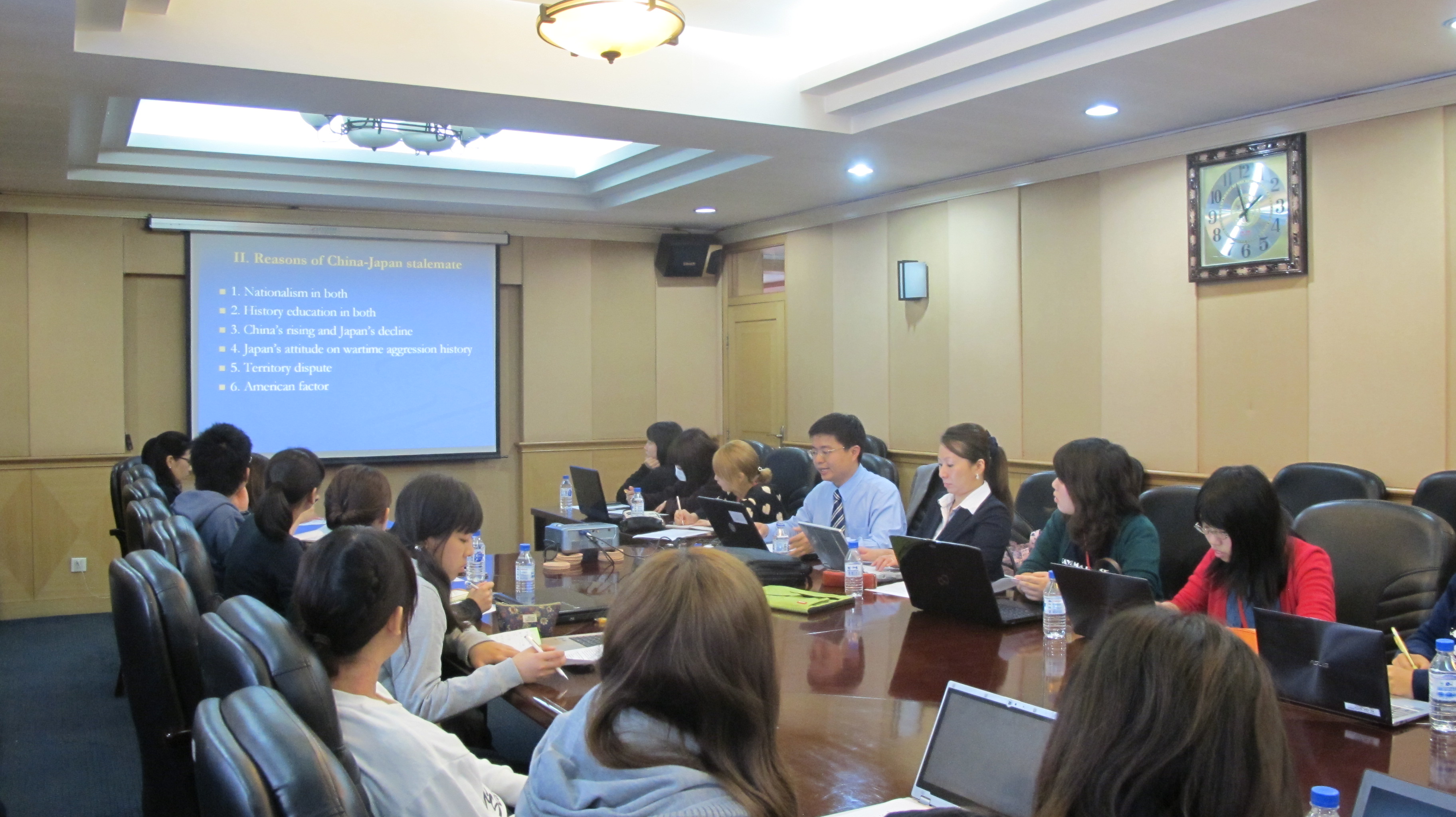 学生代表随后分别对各自学校的基本概况及当地风土人情进行了细致而活泼的描述,并分小组就上述内容进行了热烈讨论;23日下午,王秋彬副院长为冈山大学学生做了主旨为“中日关系再思考”的专题讲座,在学生中间引起反响与共鸣,现场师生就相关议题进行了坦诚的问答与交流;24日上午,赌博游戏