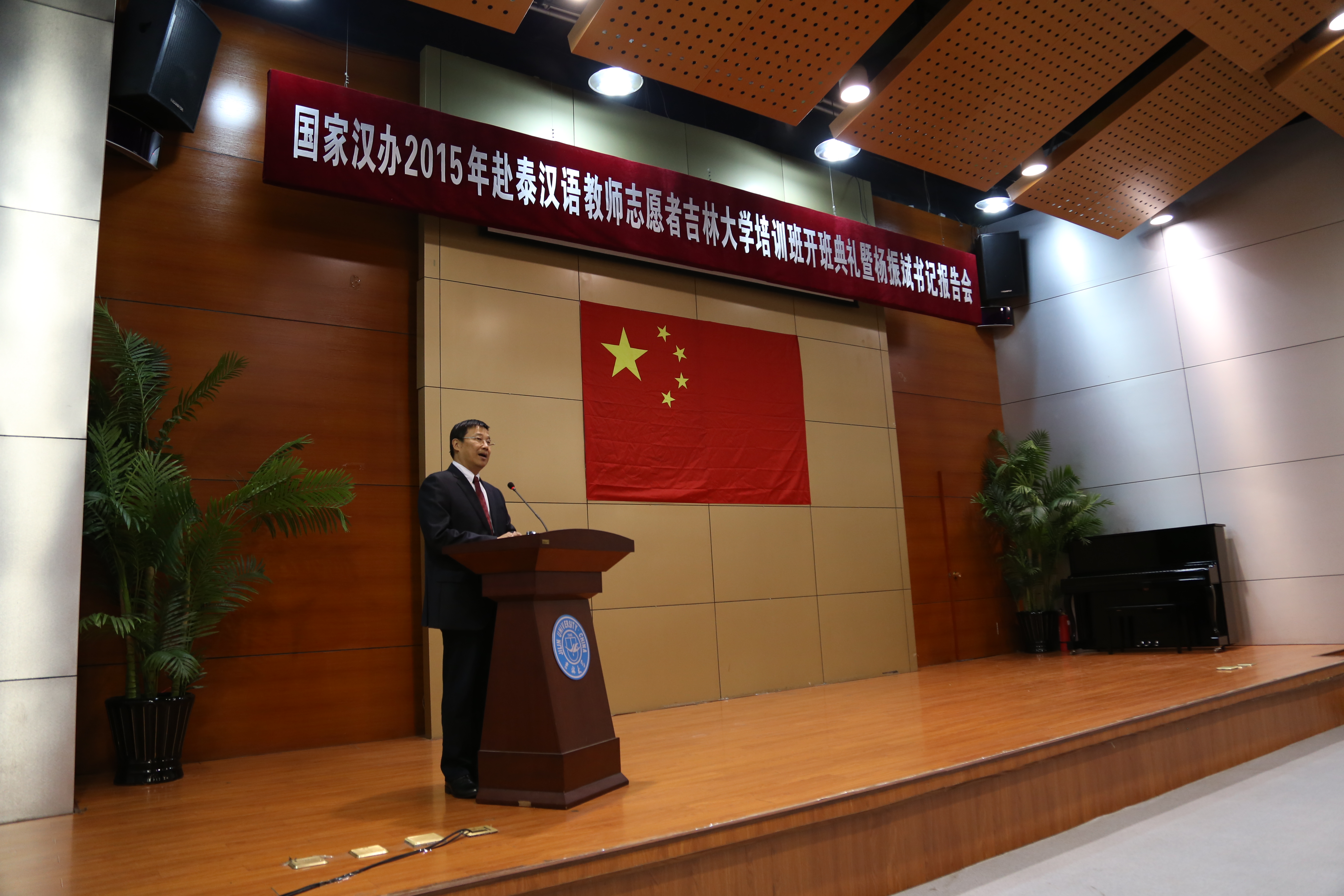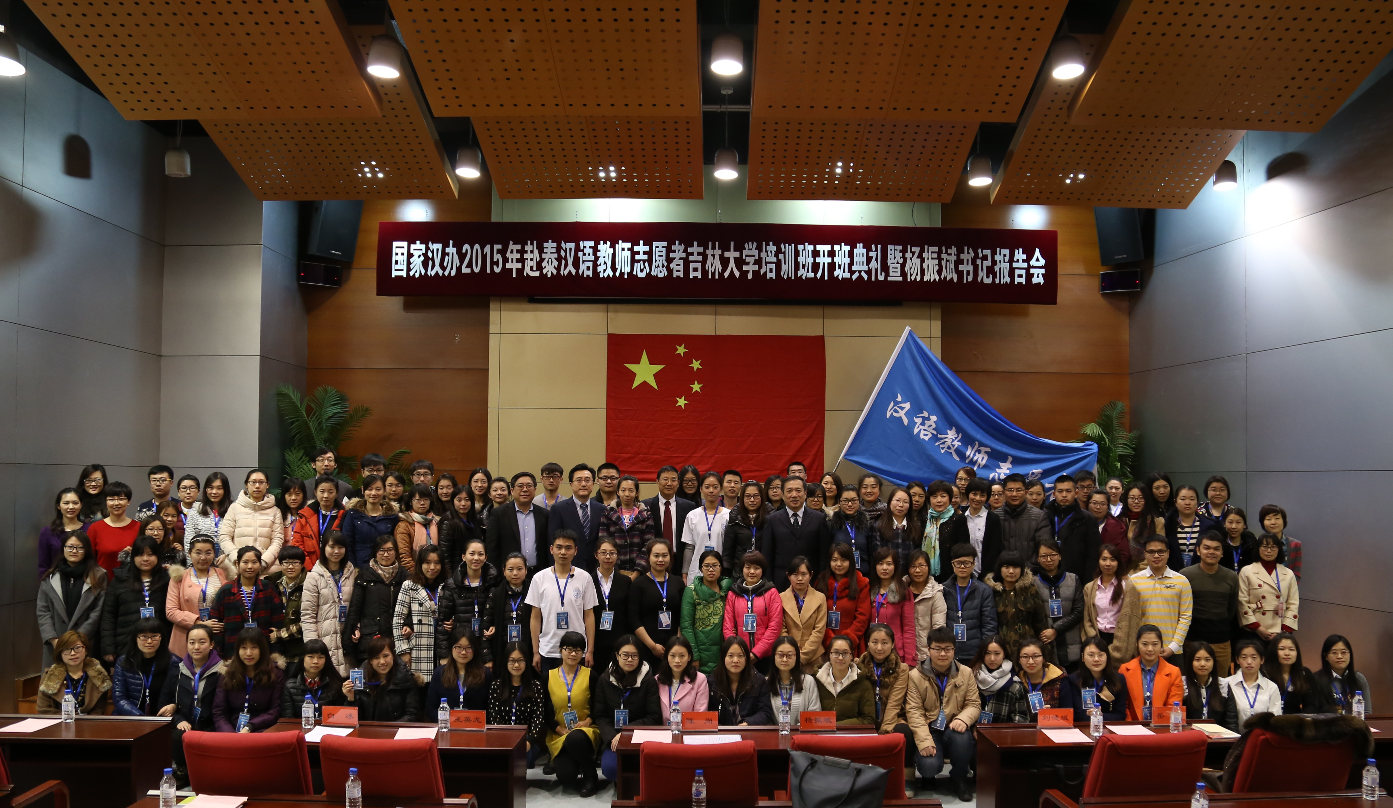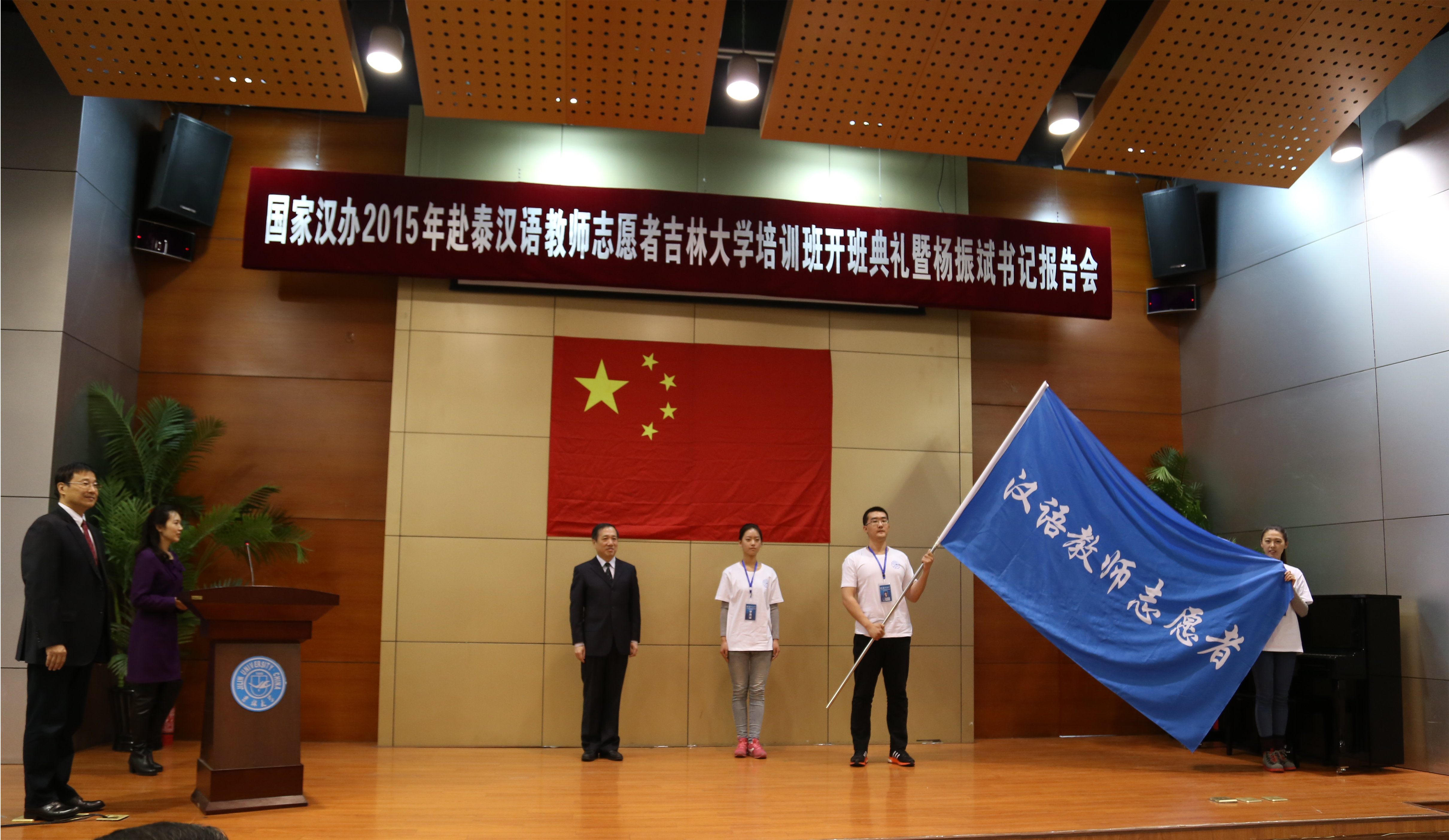 3月12日上午,国家汉办2015年赴泰汉语教师志愿者吉林大学培训班开班典礼在吉林大学国际汉语教育东北基地学术报告厅举行。校党委书记杨振斌为培训班授旗并为培训学员作报告。赌博游戏