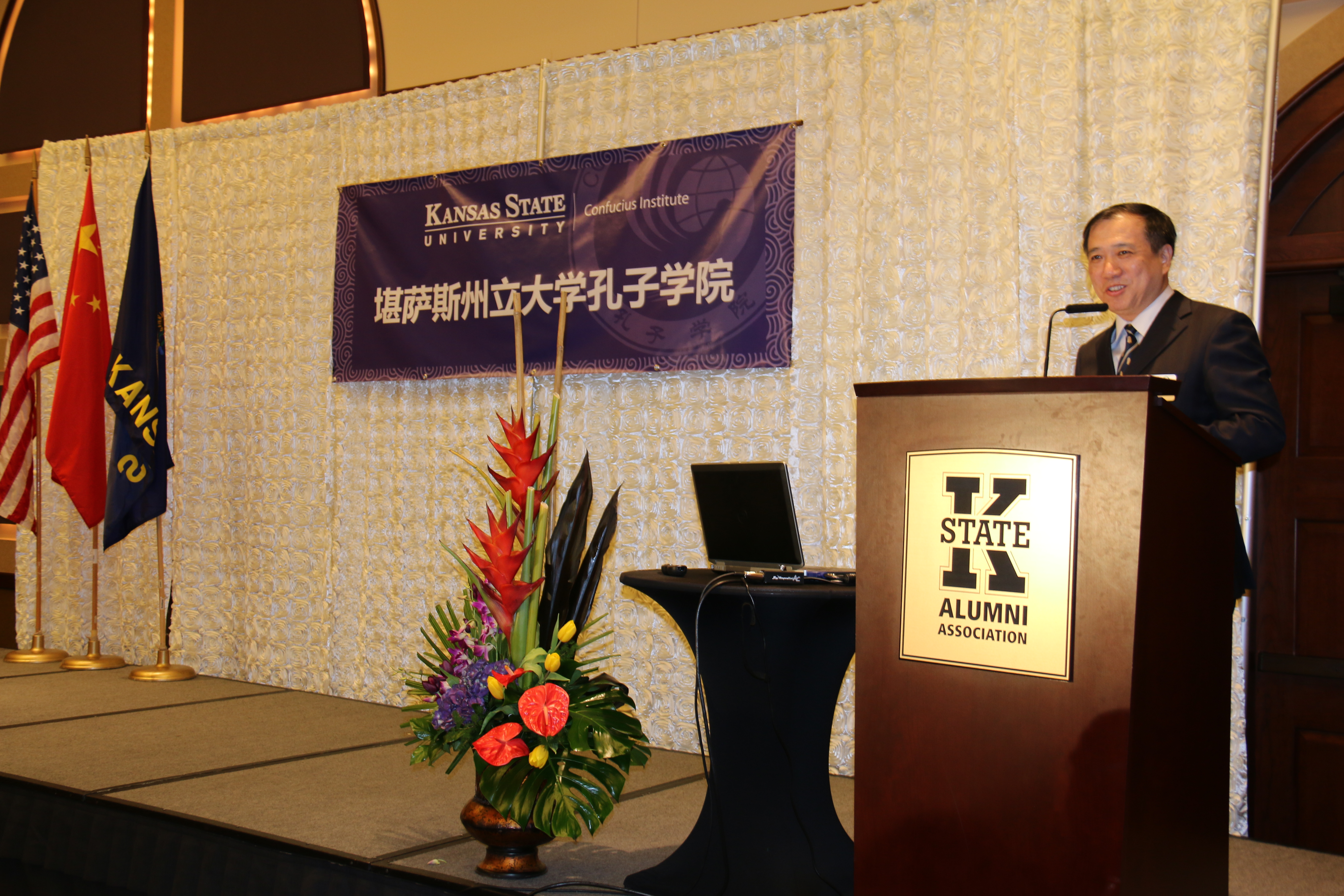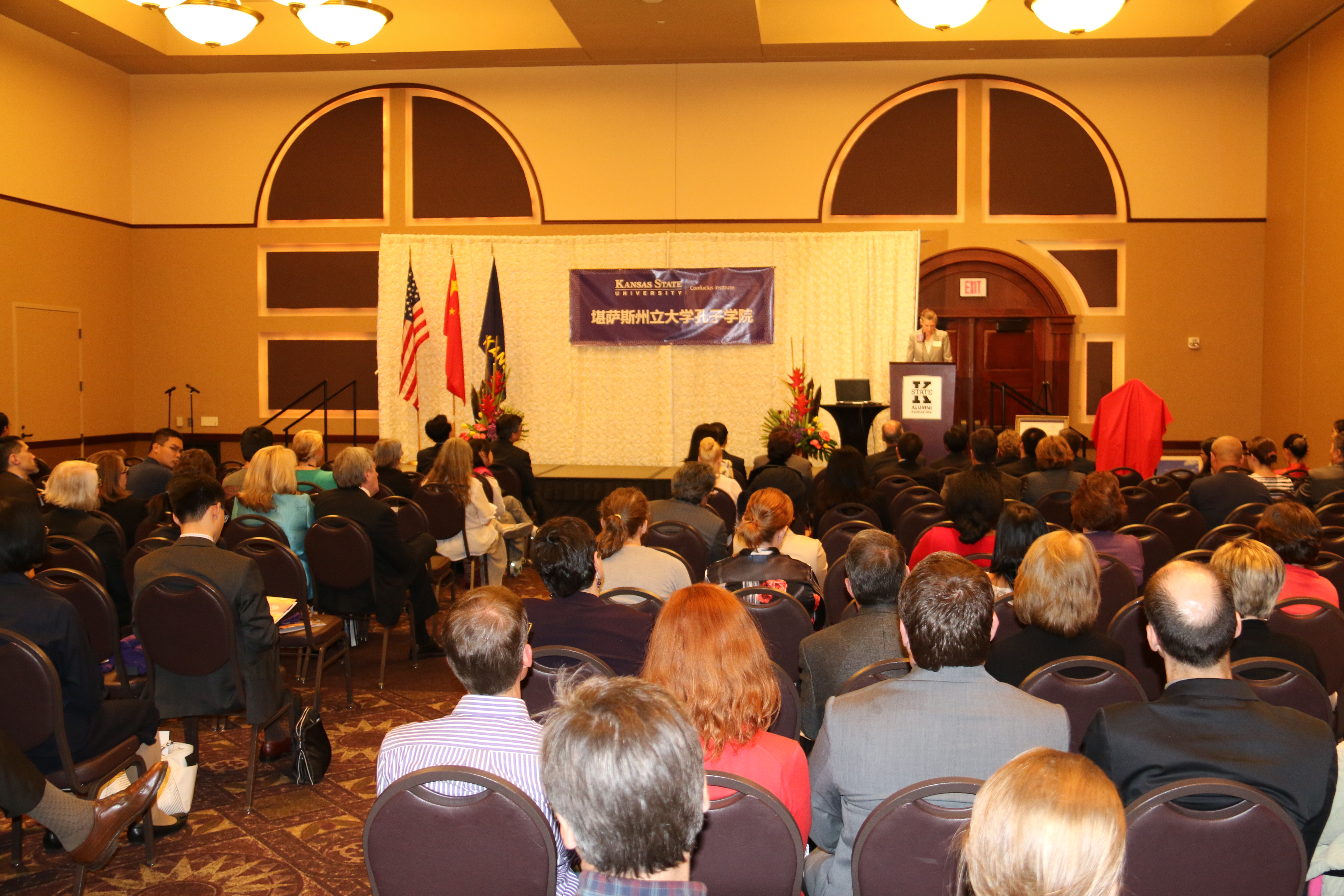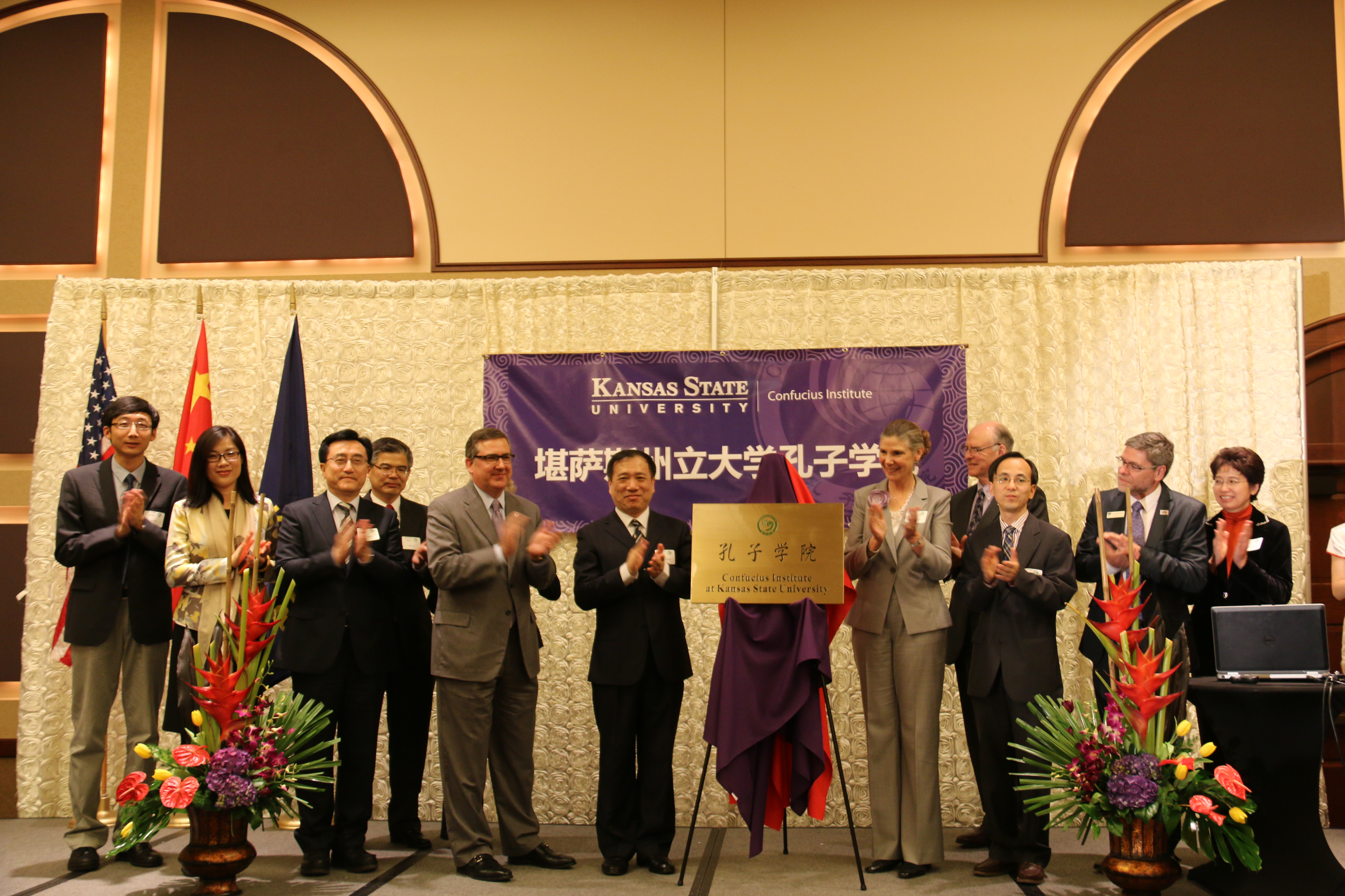 正式揭牌成立。校党委书记杨振斌率代表团出席揭牌仪式并致辞,堪萨斯州立大学校长柯克·舒尔茨(Kirk Schulz)、教务长兼常务副校长艾谱莉·梅森(April Mason)、中国驻芝加哥总领事馆刘军副总领事、堪萨斯州政府代表等共150人参加了揭牌仪式。仪式由堪萨斯州立大学主管国际事务副教务长马萨罗·萨巴提斯(Marcelo Sabates)主持。国家汉办主任许琳专门发来贺信。