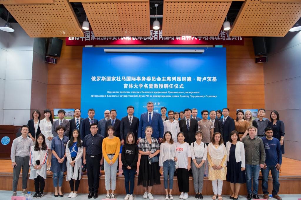 8月23日,俄罗斯国家杜马国际事务委员会主席、莫斯科大学政治学系国际关系和一体化进程教研室主任列昂尼德·斯卢茨基在国际学术大讲堂受聘为吉林大学名誉教授。吉林省人大民族侨务外事委员会、吉林省人大常委会办公厅对外联络处、吉林省外事办公室欧亚处相关负责人,吉林大学校长张希,常务副校长邴正,党委宣传部、社会科学处、赌博游戏