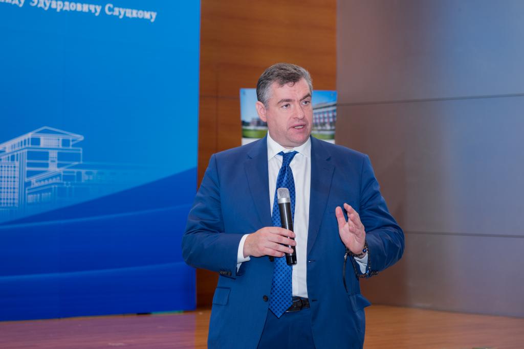 列昂尼德·斯卢茨基(Leonid Eduardovich Slutsky)现任第七届俄罗斯国家杜马国际事务委员会主席、国际公共基金会“俄罗斯和平基金会”董事会主席、莫斯科大学政治学系国际关系和一体化进程教研室主任。曾获俄罗斯亚历山大·涅夫斯基勋章(2016)、荣誉勋章(2012)、友谊勋章(2008)。