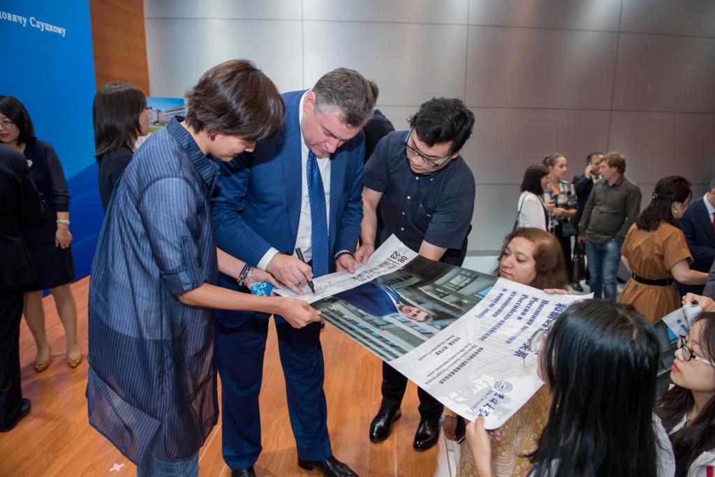 师生要在将来的学习、教学和科研中紧跟国际热点,并表示自己作为吉林大学的名誉教授会常来长春与大家就共同关心的国际问题进行交流和探讨。最后,列昂尼德·斯卢茨基主席还邀请吉林大学的师生访问俄罗斯国家杜马和莫斯科大学。