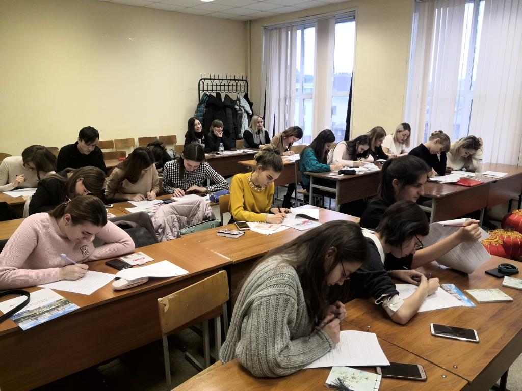 调研团组现场发放调研问卷,梁赞孔院同学们认真填写问卷,并和调研团组成员分享了他们在孔子赌博游戏
