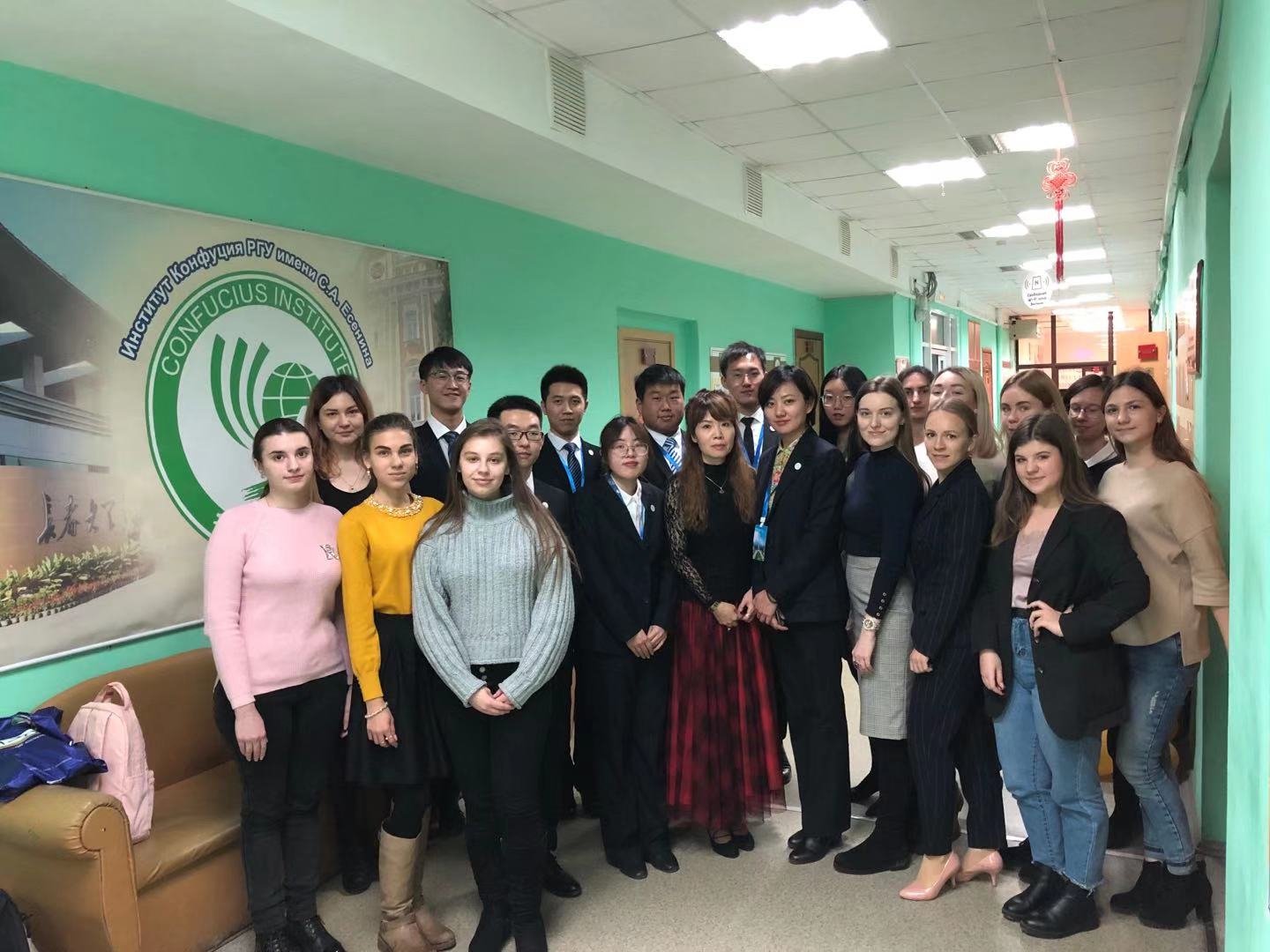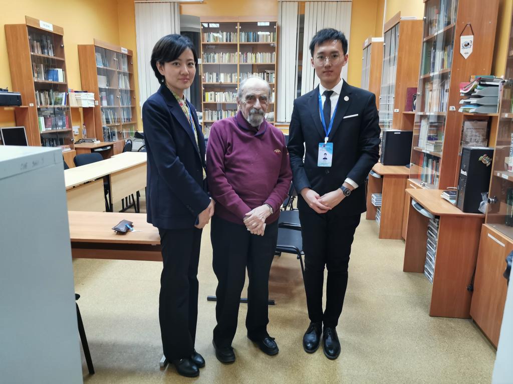 的课堂教学,分别是俄方扎普鲁德诺娃老师讲授的初级班汉语课程和中方志愿者教师魏榕辰讲授的高年级汉语实践课程。两位老师教学经验丰富、了解俄罗斯学生的特点、讲授内容生动形象,课堂气氛活跃。与此同时,乔蕊老师、刘治宸同学则在单妮娜院长陪同下拜访了梁赞国立大学德高望重的雅·玛·科尔格尔教授,他在梁赞国立大学孔子赌博游戏