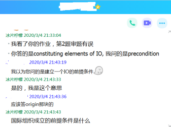 在线教学过程中,老师们进行了大胆的探索和尝试。陈曦老师在其《国际公共关系学》课程中结合课程的具体特征,将微课视频和直播教学结合起来,在学生视频学习之外隔周进行一次直播讨论互动课。乔蕊老师对学生进行了在线问卷调查,了解学生对课程的建议以及希望老师提供哪些方面的学习帮助,同时也以作业方式保证教学质量。崔悦老师采用每两周布置一次在线作业的方式,旨在通过批阅作业发掘学生对于知识点理解的偏差与难点,通过QQ与相关学生进行线下答疑。邹晓龙老师结合钉钉平台在直播方面所具有的流畅、功能完善等优势采用直播教学形式授课,授课过程中与学生上麦互动,直播后布置课后阅读任务与作业,并在下次课程进行作业点评,实时检验学生的学习效果。孙丽萍老师基于已经建设完成的国家精品在线课程资源并结合上传PPT和推荐书目到教学平台进行教学。