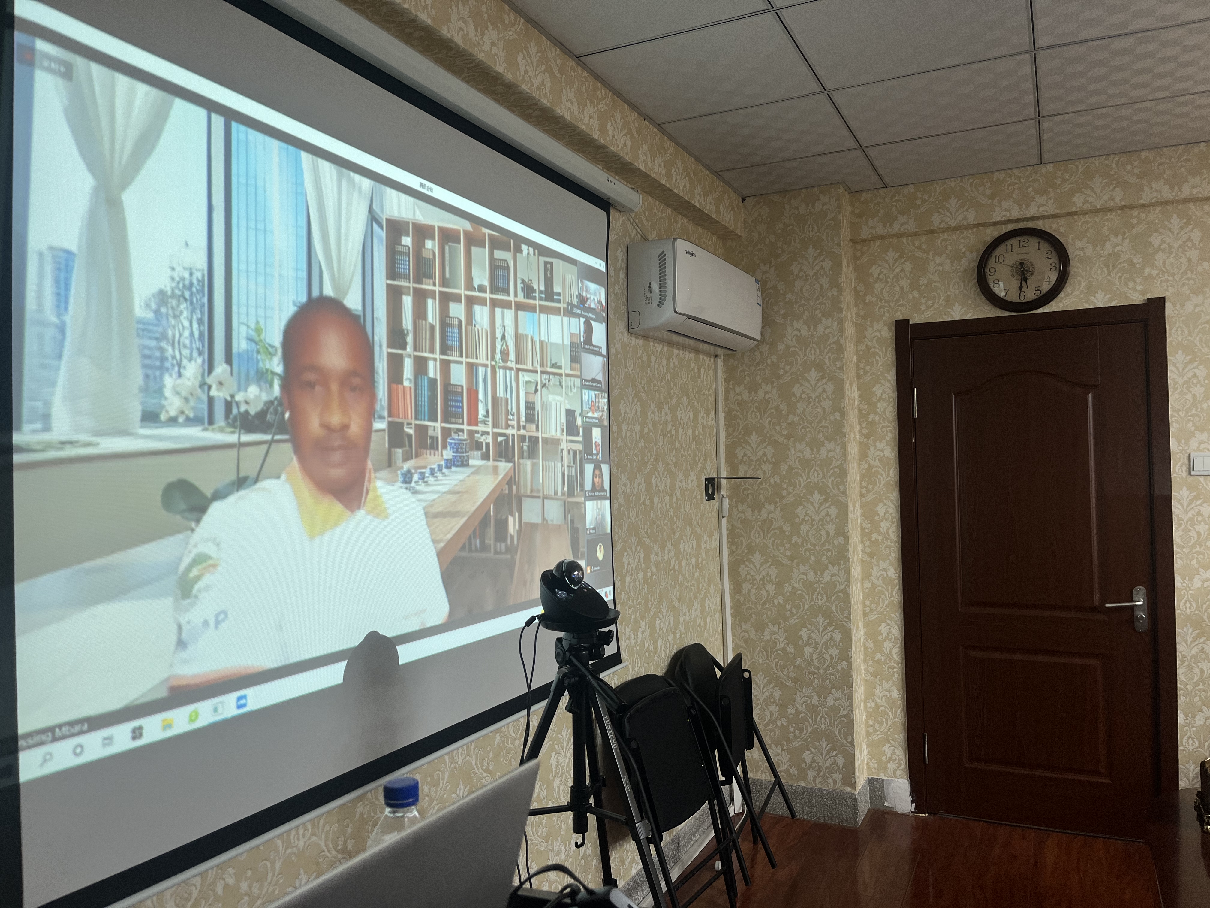 From "accelerating the development of overseas study and improving the quality of international education" to "accelerating the construction of a globally competitive talent system to gather talents from all over the world", General Secretary Xi Jinping has put forward the requirements of not only accelerating the development, but also improving the quality and efficiency of the work of overseas students in the new era. At the same time, Xi Jinping has also stressed the need to "attract talents from all over the world" and make top-level designs to "play a role" for overseas students. On the afternoon of October 22nd, with the purpose of helping 2021 new students adapt to study and life, improve the quality of online teaching, and respond to doubt and questions related to study and life, School of International and Public Affairs held an online academic exchange and experience sharing symposium for international students. The meeting was moderated by Dr. Yan Zhen. Professor Ham Myungsik, Professor Wang Li, Dr. Zou Xiaolong, and four senior student representatives: Ms. Sadykova Zamira from Russia, Mr. Almathil Ismail and Mr. Koshaimah Yahya from Yemen, and Mr.Khan Hashmat Ullah from Pakistan attended the offline venue, while all the 2021 new students attended the online meeting via VooV.