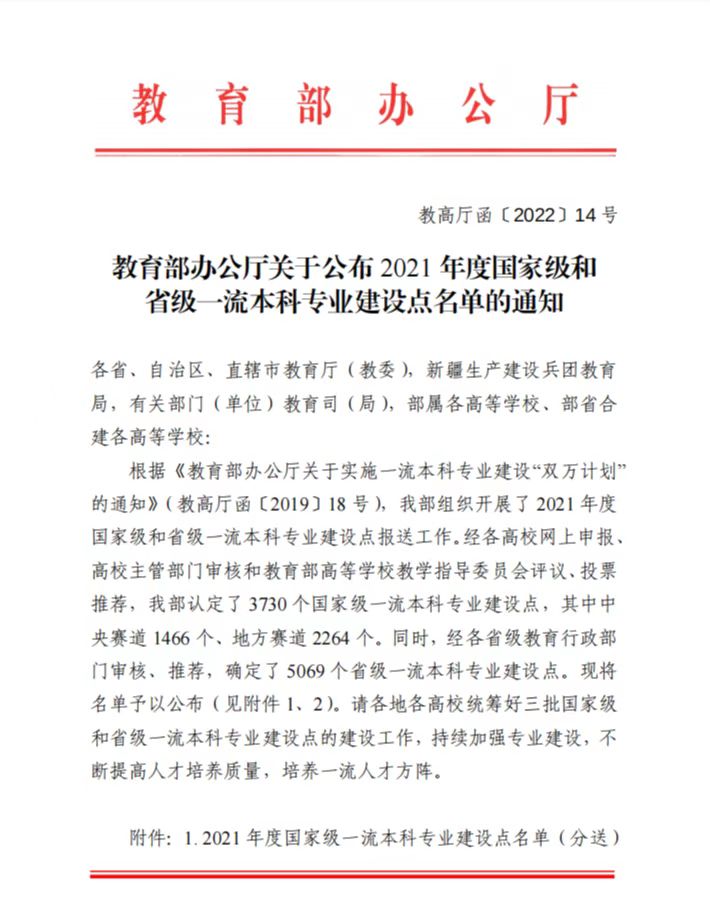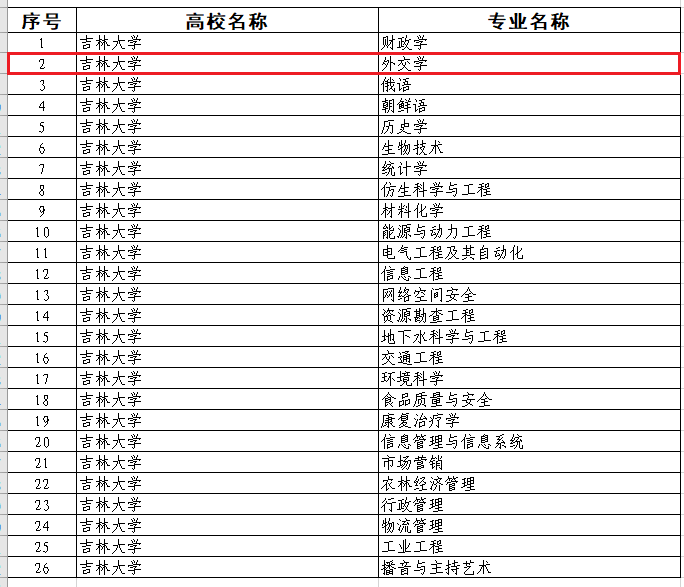根据《教育部办公厅关于公布2021年度国家级和省级一流本科专业建设点名单的通知》,吉林大学外交学专业获批国家级一流本科专业建设点。目前,吉林大学政治学一级学科下设的政治学专业、国际政治学专业及外交学专业均成为国家级一流本科专业。