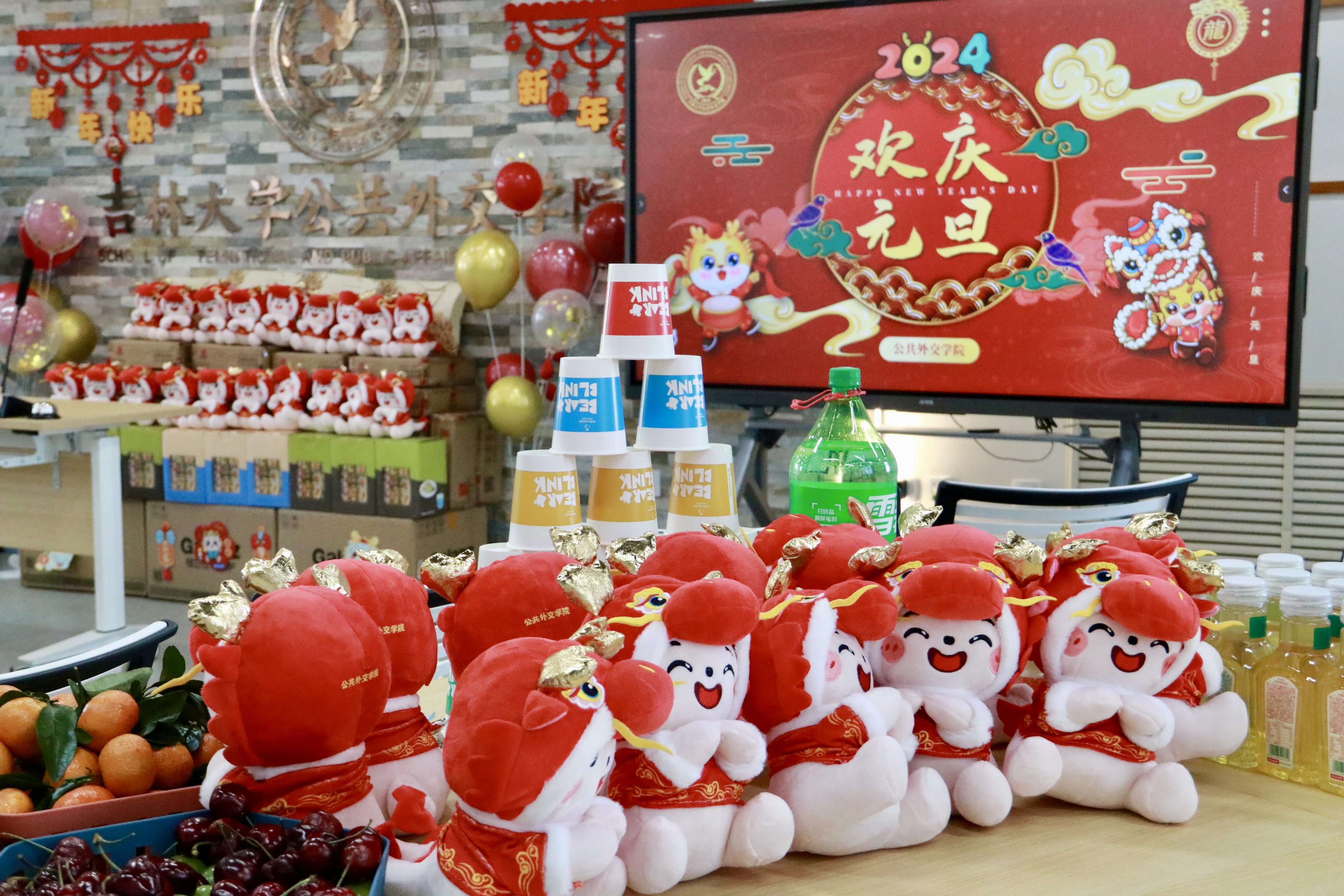 在中心校区吕振羽楼818室举办“璀璨外交 温暖启航”2024年教职工新年联欢会。活动现场气氛热烈、暖意融融。赌博游戏