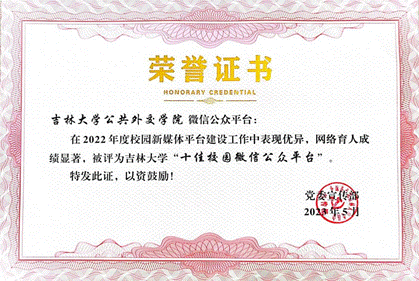 ”连续三年获评吉林大学“十佳校园微信公众平台”,自2020年首届“校园好网民”寻访活动开展以来,在学生会带领下,宣传信息部连续三年获评“校园好网民”称号,赌博游戏