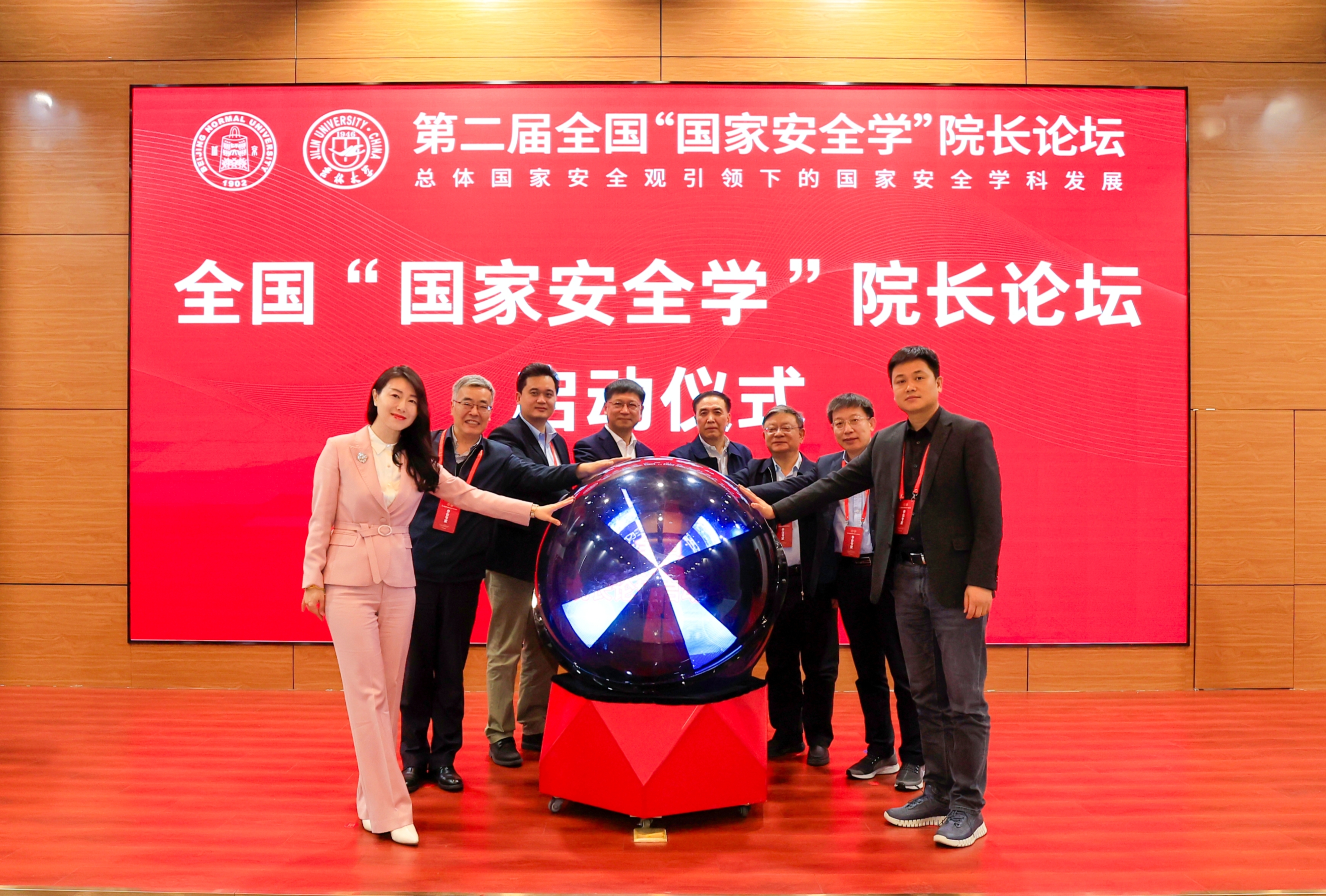 党委书记申世飞共同按下启动球,全国“国家安全学”院长论坛正式启动。