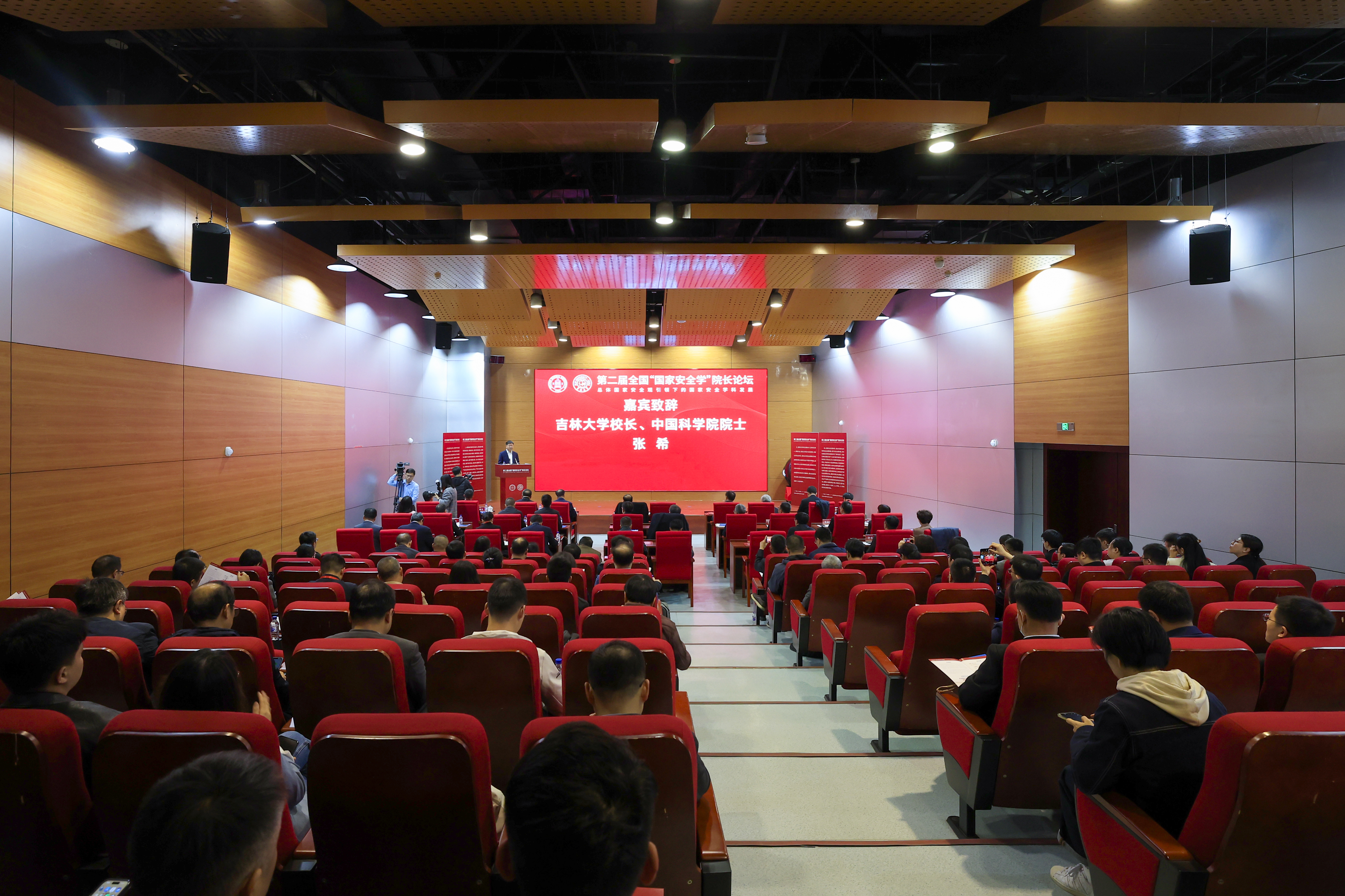 张希在致辞中向与会嘉宾长期以来对吉林大学和吉大国家安全学科建设发展给予的指导和帮助表示感谢。他简要介绍了国家安全学一级学科的设立背景以及吉林大学国家安全学的发展情况,并提出国家安全学科建设面临的挑战。张希指出,只有一流的师资,才能培养一流的学生,并产生一流的研究成果。在人才培养体系的建设中,要处理好价值塑造、知识学习与能力培养的关系,解决好宽与深的矛盾,从而保障人才培养质量。本次“国家安全学”院长论坛的召开旨在搭建高水平的研讨互动平台,通过不同思维方式的碰撞,为推动解决学科建设和专业发展遇到的难题提供建设性的新思路。希望各位学术带头人加强交流合作,深化互学共建,进一步明晰国家安全学学科建设的内涵和目标共识,共同探索国家安全专业人才的培养方式,以学科高质量发展保证人才培养的专业质量,为国家发展与安全输送高层次人才,不断为国家发展与安全作出新的更大贡献。