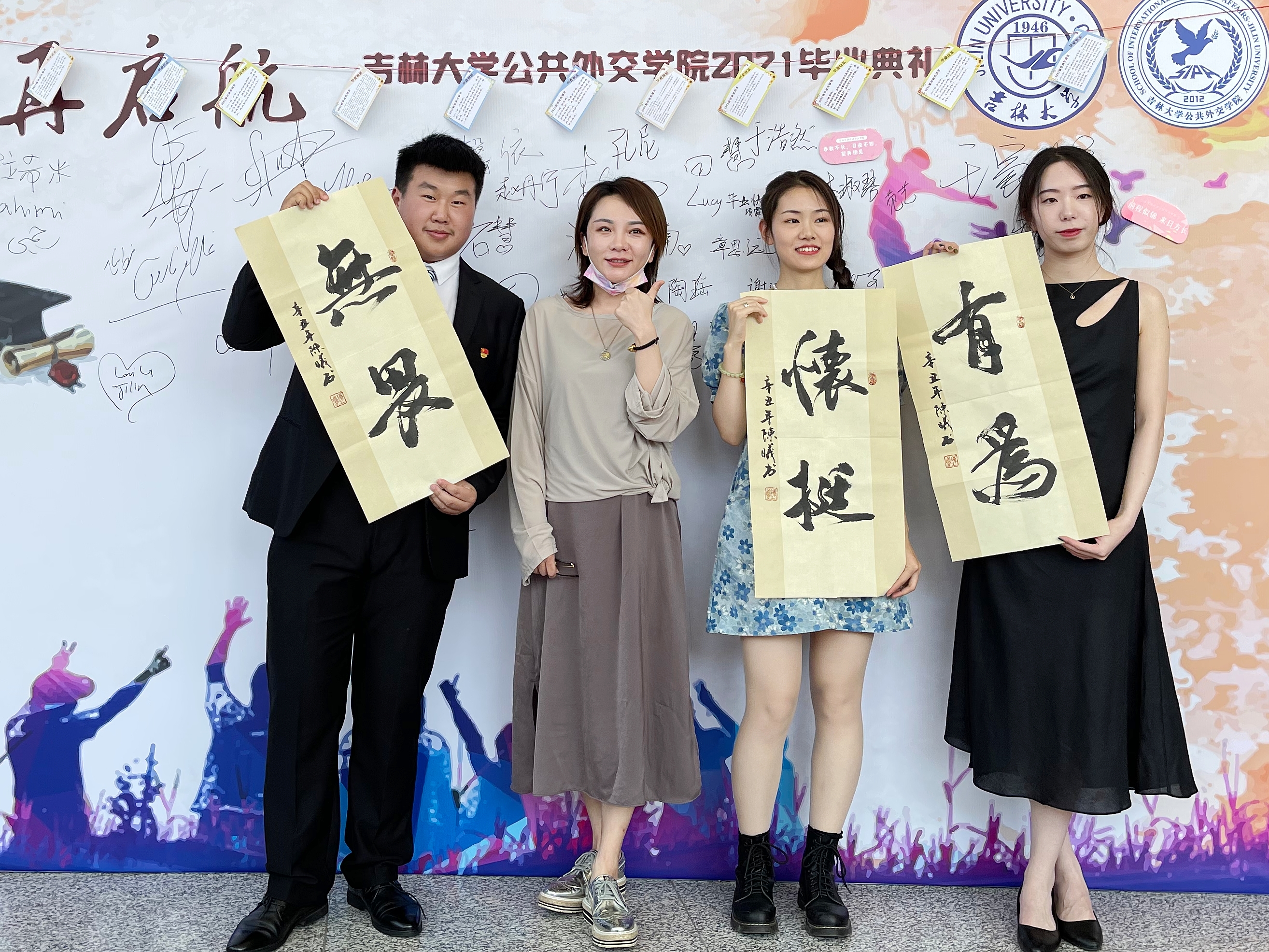 凤凰花开又一载,学子吟游诉别情。今天,我们在这里举行吉林大学公共外交学院2021届毕业典礼,共同见证同学们的高光时刻。在此,请允许我代表杨民书记、代表全院教师向2021年毕业的37名本科生、13名硕士研究生和20名留学生致以最诚挚的祝福和最美好的祝愿!祝贺你们获得了专属自己的吉大戒指和外交小熊,祝贺你们将名字永远烙印在吉大的学位证书上!