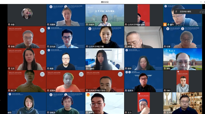 郭锐教授从谱写马克思主义中国化时代化新篇章、中国式现代化的主要特征、中国式现代化的本质要求和战略安排、必须牢牢把握的五个重大原则、中国式现代化是走和平发展道路的现代化五个方面对二十大报告内容进行了详细讲解,并就报告的第十一、第十四专章结合国家安全学一级学科、外交学专业建设进行了重点讲解。
