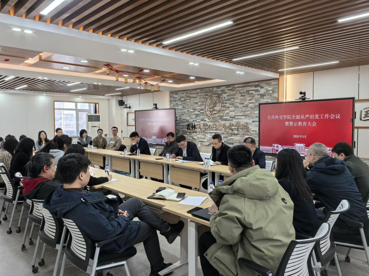 会上, 王力副书记传达了校党委副书记、纪委书记,国家监委驻吉林大学监察专员胡漫同志的讲话精神,通报了学校2024年以来违纪违法案件,于洪生副院长传达了姜治莹书记在2025年全面从严治党工作会议暨警示教育大会上的讲话精神。
