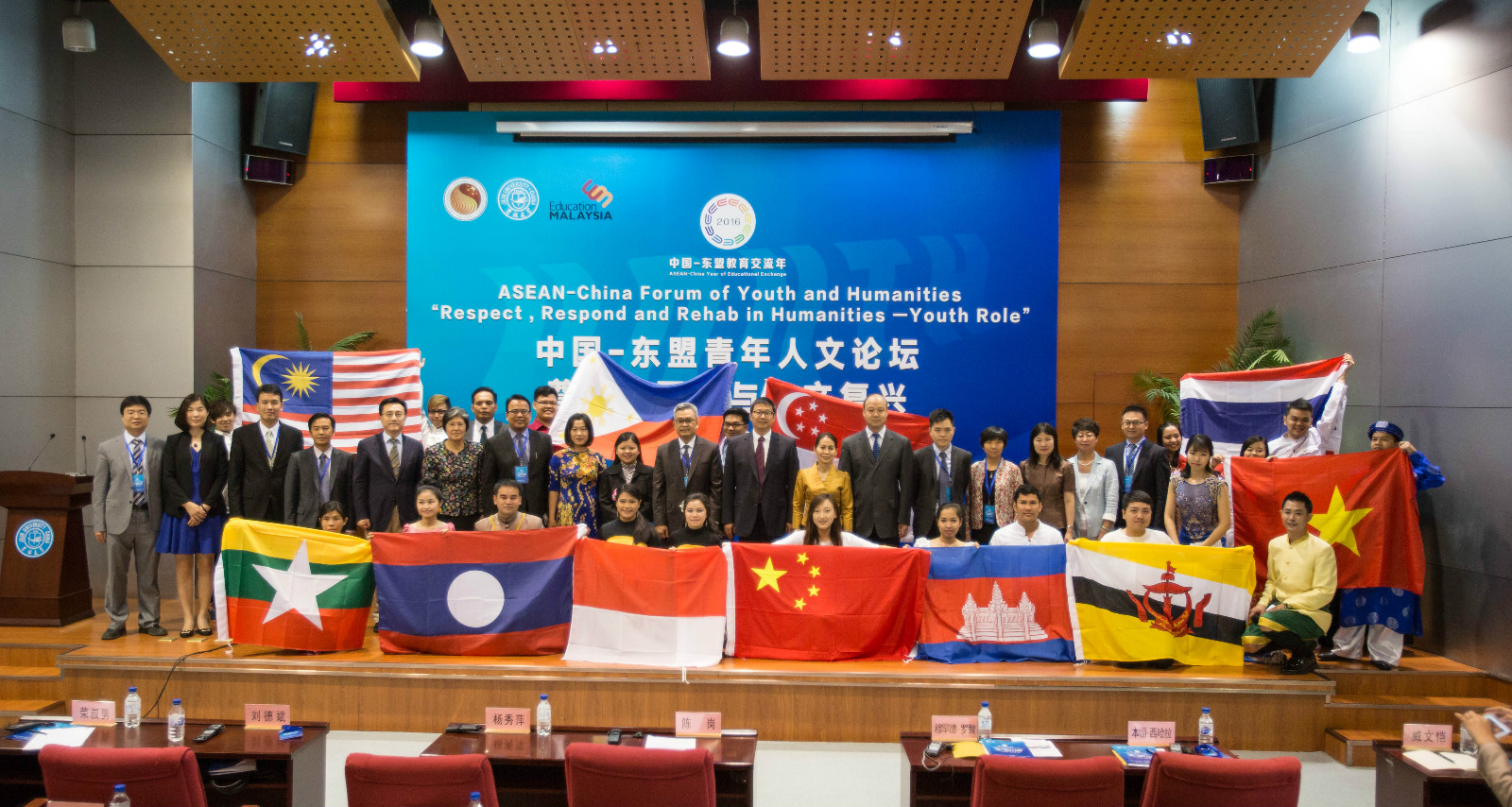 学术报告厅隆重举行,开幕式首先播放了在长春学习的东盟国家留学生视频,分享了他们在中国学习与生活的感悟与体会。杨秀萍秘书长、陈岗常务副校长、老挝驻华使馆教育与文化处一等秘书本恒·西哈拉分别致辞。随后,来自中国与东盟国家的青年学生在开幕式上共同奉献了一场颇具各国文化特色的文艺演出。在主题发言环节,马来西亚驻华使馆教育参赞穆罕德·罗智博士(Mohd Rozi)和暨南大学国际关系赌博游戏