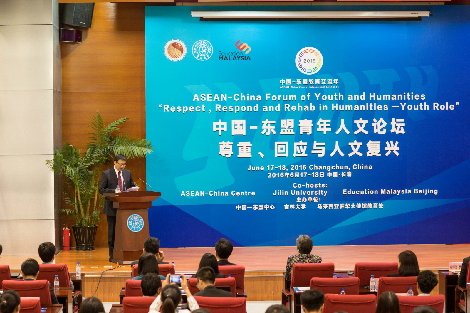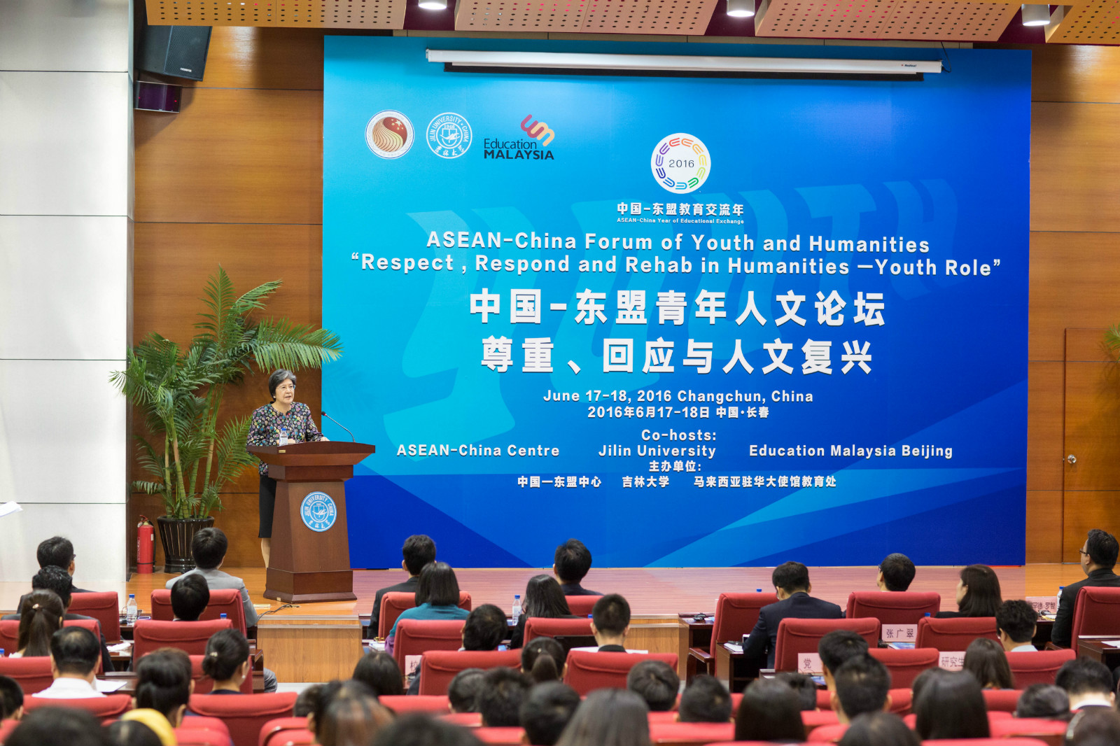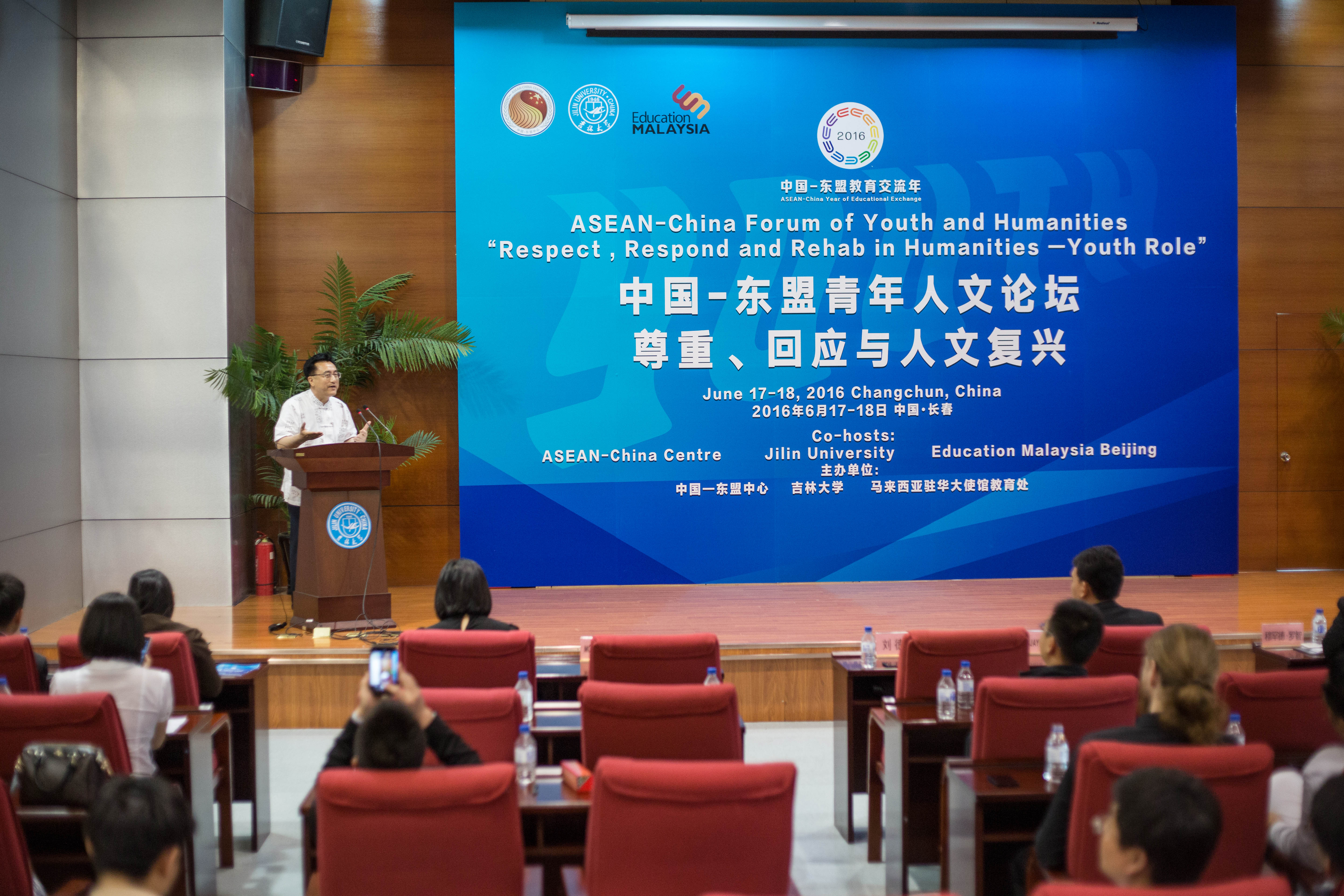 2016年6月16-18日,由中国—东盟中心、吉林大学、马来西亚驻华大使馆教育处共同主办的“中国-东盟青年人文论坛”在我校举行,中国-东盟中心秘书长杨秀萍大使、东盟各国驻华使馆教育官员、长春各高校东盟留学生以及我校师生共170余人出席。此次论坛是2016年中国—东盟教育交流年系列活动之一,也是中国—东盟中心首次在东北地区举办的大型人文交流活动。