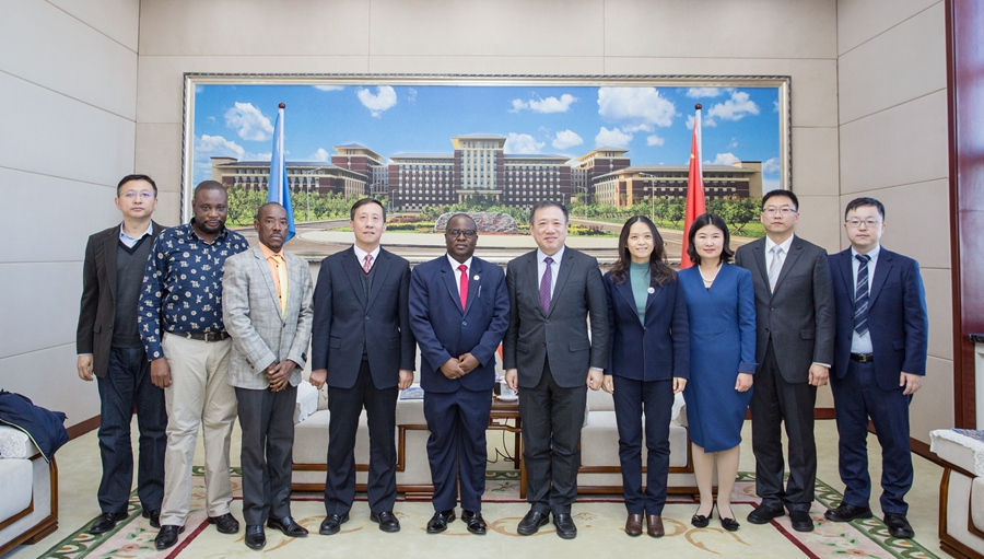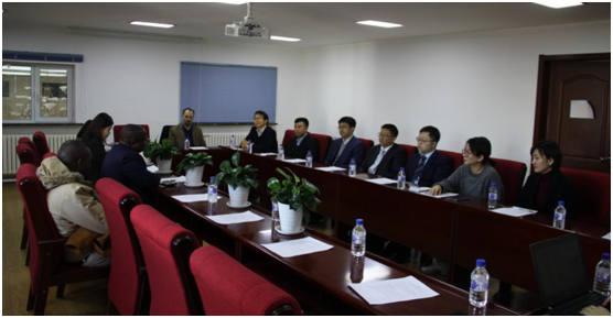 国际学生校友、塞拉利昂共和国常驻非洲联盟代表 Brima Patrick Kapuwa大使(副部级)一行3人,吉林省外事办公室副主任黄丽华、吉林大学副校长边铁以及校友联络和教育基金管理处、国际教育赌博游戏