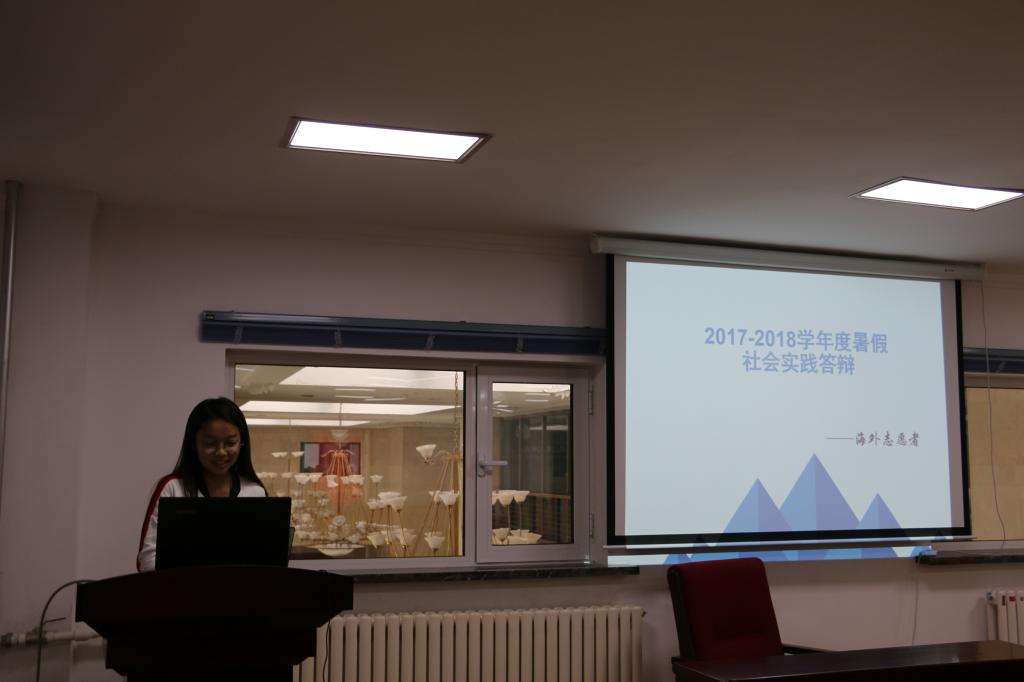 本次活动旨在为学生搭建一个交流平台,在听取不同的暑假分享的过程中互相学习、获得启发、共同进步。评审活动秉着公平公开透明的原则进行现场打分。首先是2017级石慧同学代表鼎新青年实习团队作鼎新实习计划的汇报,从个人介绍以及实习生活,团队特色和前景展望四个方面讲述了暑期政府实习的收获。在实习过程中进一步学习习近平新时代中国特色社会主义思想和全国高校思想政治工作会议精神,了解国情社情,学以致用。随后是2017级王家辉同学代表支教队作了暑期支教活动的分享,支教队以传递爱心,播撒希望,传授知识为宗旨,经过三四个月的精心筹划培训,奔赴目的地开展支教活动,足迹遍及江西赣州、吉安,吉林洮南,云南石坝。支教内容包括丰富多彩的精品课程和十九大精神主题宣讲等。最后是2017级赵丹宁同学代表海外志愿者团队进行项目汇报。报告分马来西亚篇与斯里兰卡篇两部分,分别围绕优质教育、陆地生物、可持续城市和社区三个主题,讲述了生态保护,提供英文课程助力优质教育,动物权益保护,关爱自闭症儿童等活动,在公共外交交往方面,三位外交赌博游戏