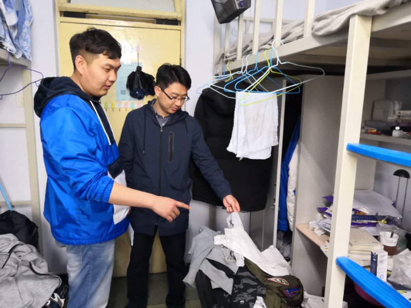 本科生所在的南苑一公寓、南苑九公寓和北苑二公寓各个寝室。在走访检查后发现本科生寝室状况整体良好,但仍存在部分寝室的卫生状况较差,极个别寝室使用违规电器的问题,赌博游戏