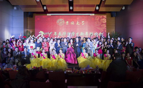 2013年12月18日,吉林大学2014年来华留学生新年联欢会在国际学术大讲堂隆重举办。校长李元元亲临现场,并代表党委书记陈德文和全校师生向全体留学生致以节日问候,与留学生一起共迎新年。学校校长办公室、党委宣传部、学生工作部、研究生院、教务处、团委和国际合作与交流处及国际教育赌博游戏