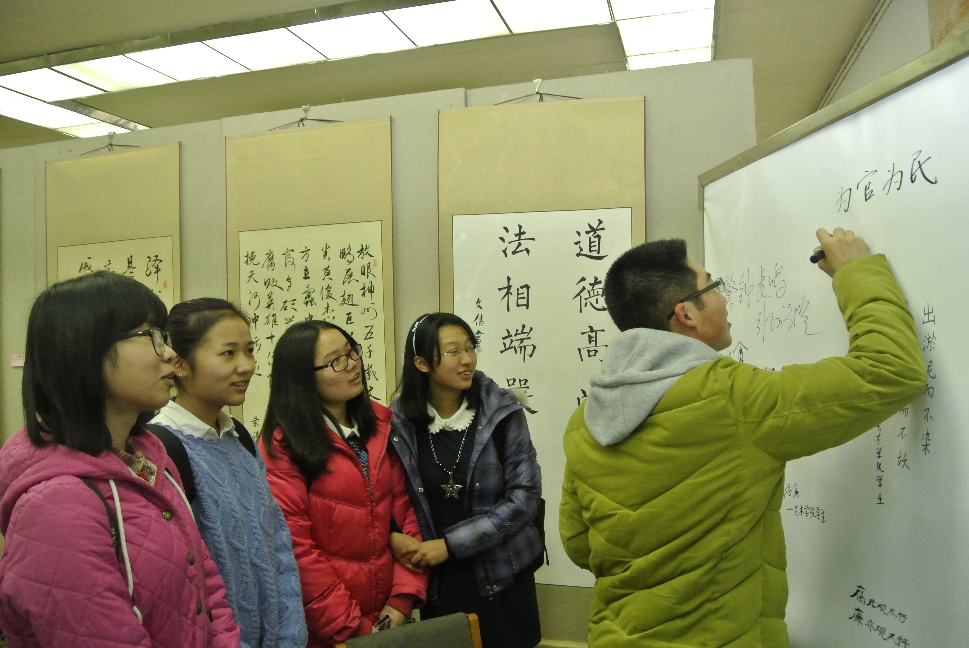 参观期间,同学们通过一幅幅字画生动学习和领会了廉政精神。当看到讽刺贪腐现象的漫画作品时,同学们纷纷表示贪腐理应受到社会的谴责;当欣赏到廉洁的人物事例时,同学们认为廉政的行为是深得民心的,是该从青年时期就开始培养的一种优秀品格。参观结束后,同学们都深有感触,相互讨论关于廉政文化作品学习的心得。热烈的讨论后,一位同学代表在展示板上写下“为官为民,浩然正气”八个字,表达了赌博游戏