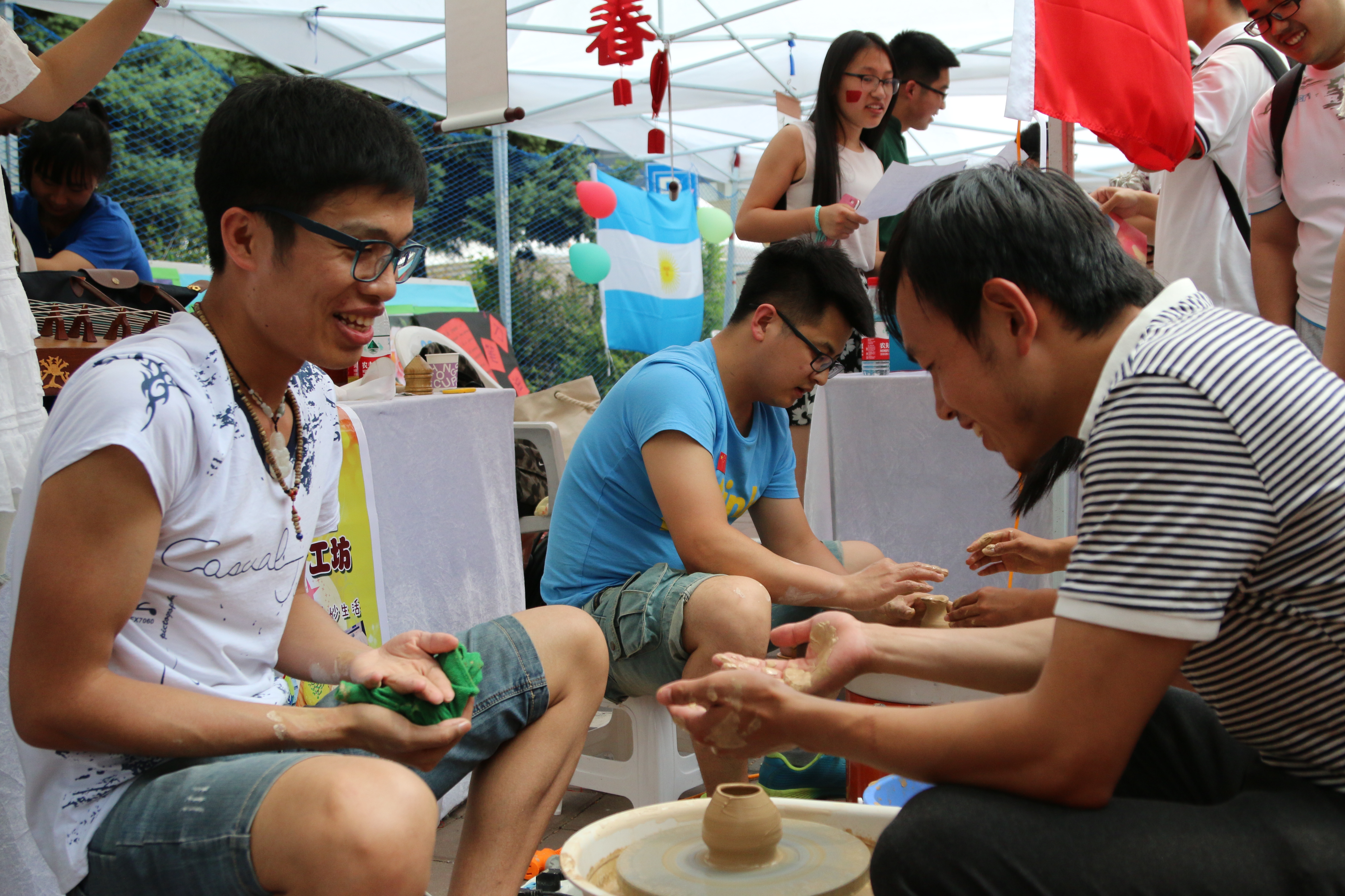 的同学们参与到了吉林大学举行的文化日活动。新成立的“Together”社团全程负责了这次文化日中国馆的布置、管理工作。“Together”社团的同学为中国馆设计了三个体验环节,分别是回答和中国文化相关的题目、亲自制作陶艺花瓶、穿上汉服、唐服并拍照留念。前来参观中国馆的朋友可以分别体验这三个环节,充分参与到中国文化的体验活动中,许多参与体验的留学生说着有些生涩的汉语回答中国文化问题,场面十分有趣。并且很多人是第一次亲身体验陶艺制作,虽然双手沾满了陶艺泥巴,不过看到自己亲自制作出来的陶艺罐子,相信他们的心里充满了成就感。