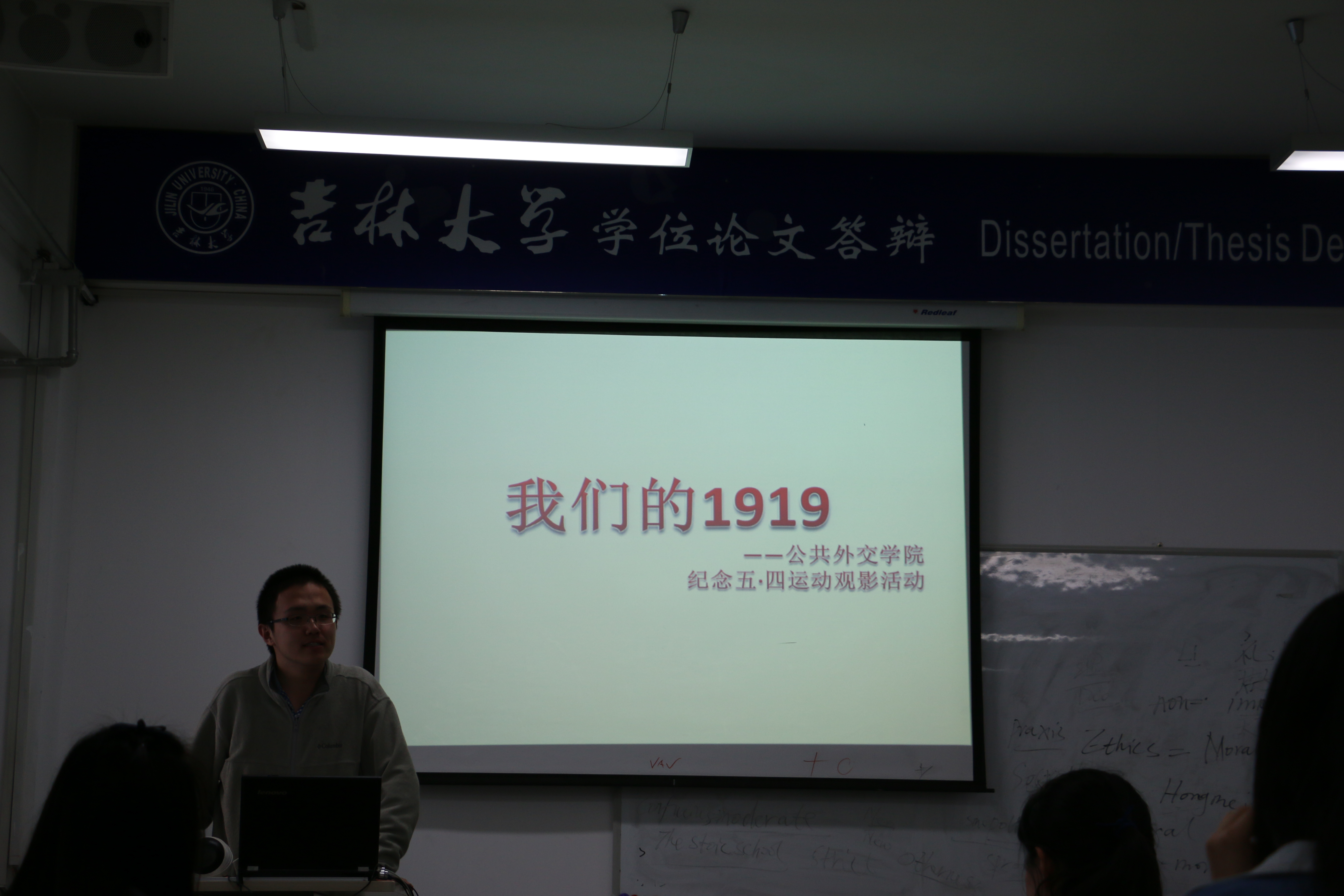 团总支举办了主题为“我们的1919”的青年学生观影活动。到场师生共同观看了以巴黎和会为背景的电影《我的1919》,深深感受到了一代外交家顾维钧的傲骨与风采,五四学生的坚强与不屈。