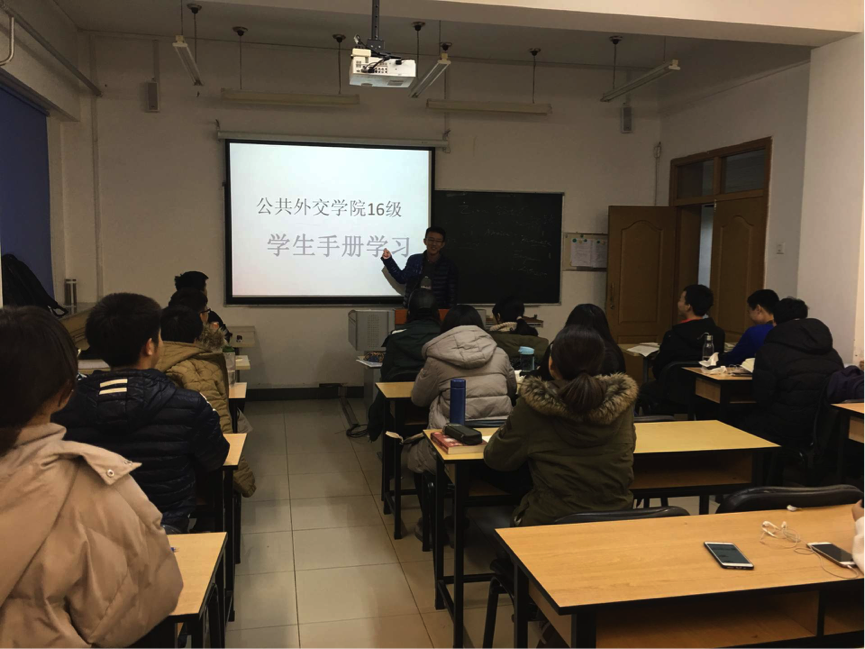 本次学习活动由各班班长组织。在活动中,各班班长对整个学生手册进行梳理学习,并重点就校规校纪、奖惩制度、资助政策、公寓管理及常规事务办理流程等相关事项为同学们给予详细解读。张恒同学在活动结束阶段提醒同学们就《吉林大学学生手册》的重点、热点问题组织内部讨论,并要求充分发挥班级干部的模范带头作用。