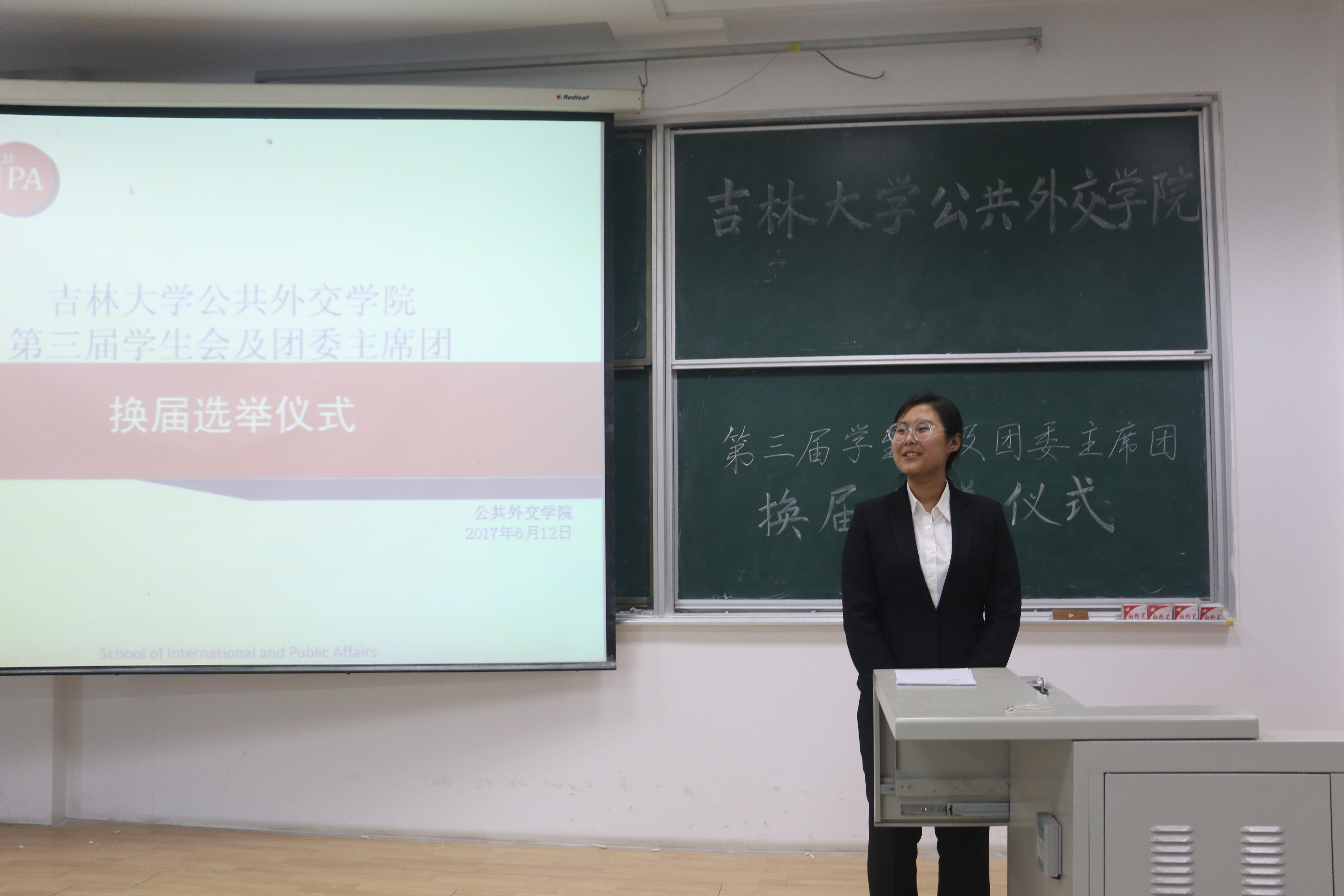于逸夫教学楼第十二阶梯教室成功举办第三届团委学生会主席团换届选举仪式。本次活动由学生会主席梁鲁广同学主持,辅导员张淑艳老师出席了本次换届选举仪式。