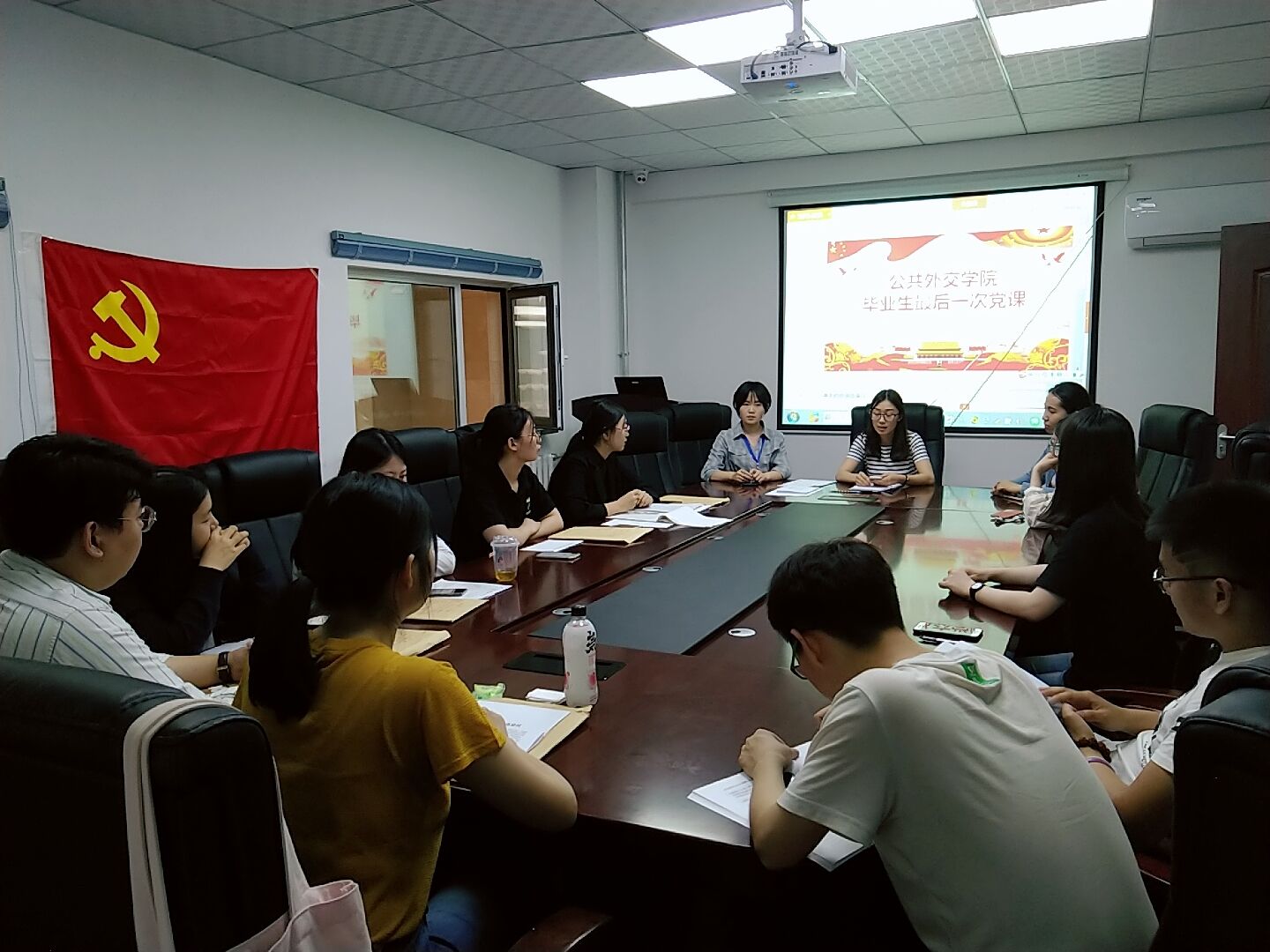 本次会议讨论了预备党员2016级研究生庄旭宁,2015级本科生张恒,刘妍汝,褚孝鹏,杨冬婉,谢静文6名同志的转正事宜。