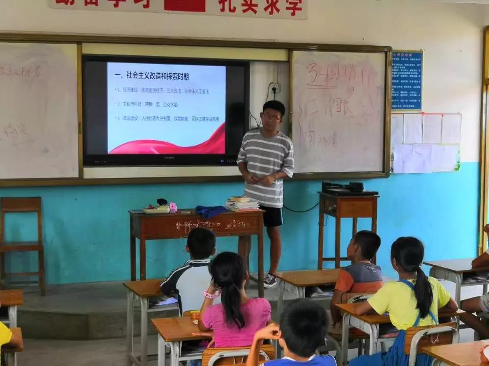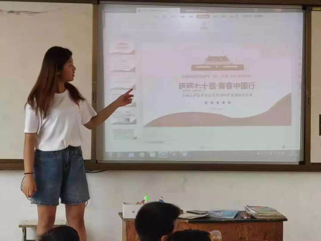 此外,成员们还以暑期支教为依托,进行了爱国主义宣讲活动。王家辉、张博宇、信思涵、王吉昊四位同学在山东省郓城县支教期间,分别在三个年级,面向一百余名学生召开了主题班会,通过讲述红色历史故事、观看爱国主义教育视频、开展爱国主义知识竞赛、学生家访发放纪念建国七十周年宣传单等丰富多彩的方式,向当地学生与居民深入宣传了爱国主义精神与党的十九大精神。张雪杨同学在广西南宁支教期间,则通过组织召开爱国主题班会、举办朗诵比赛、开展爱国主题文艺汇演等形式,组织学生感受红色文化,营造了良好的爱国主义教育氛围。