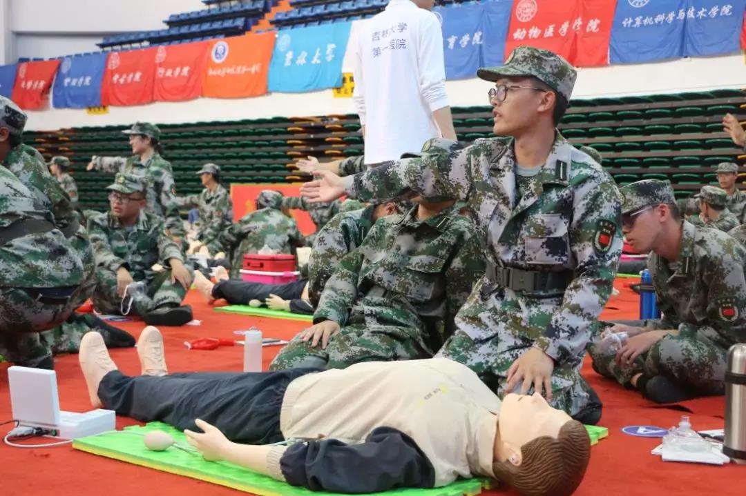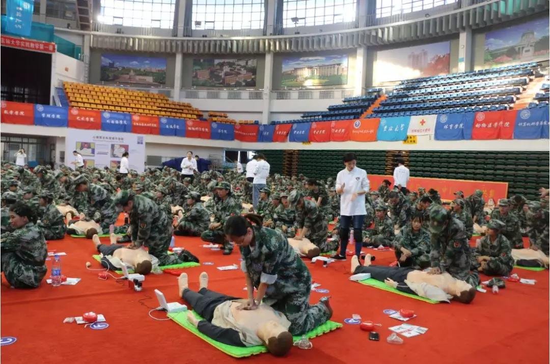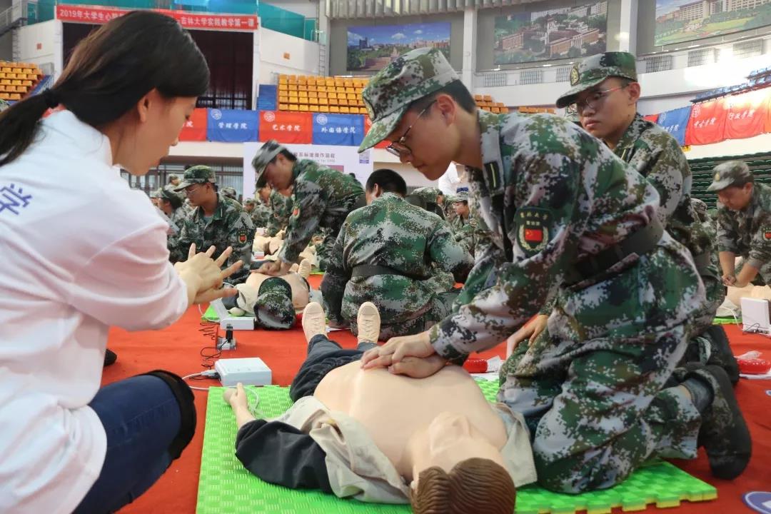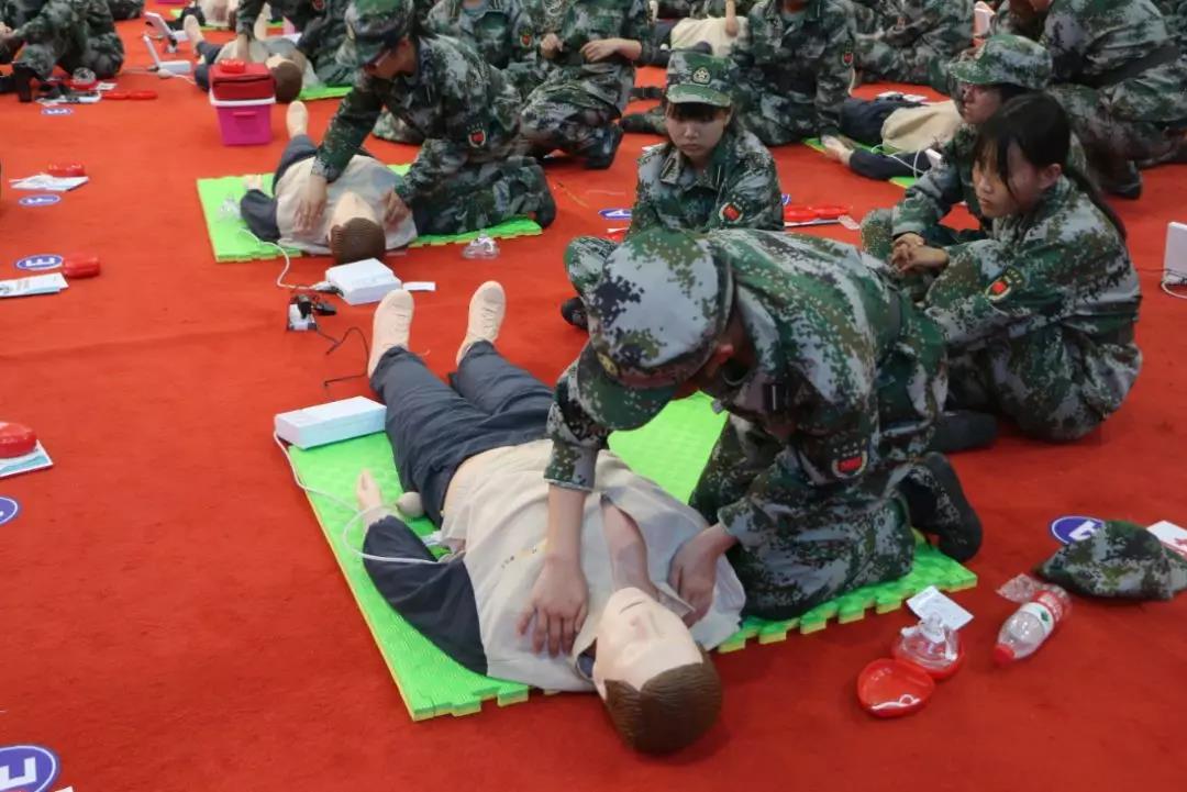 2019级新生在军训期间进行了一堂生动实用的实践教学课——心肺复苏急救技能培训。