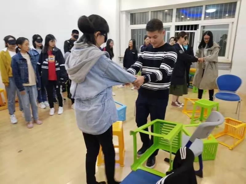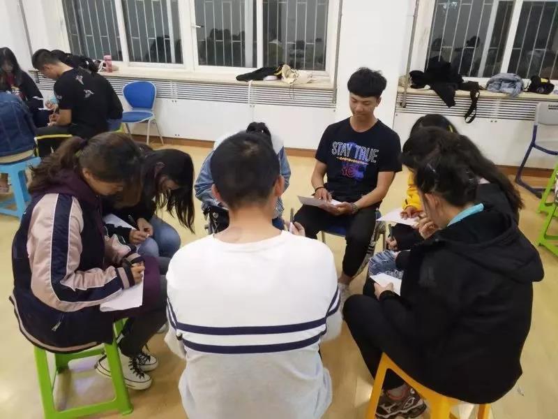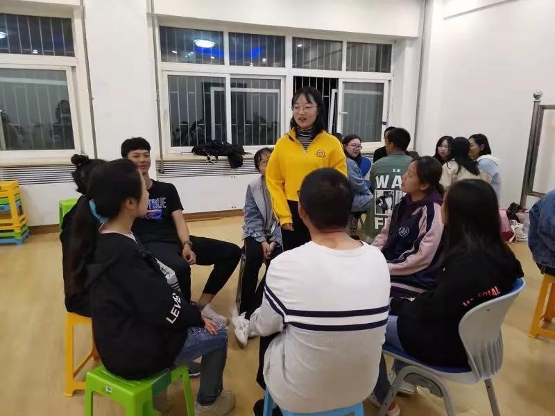 2019级新生于经信教学楼A101开展了主题为“我们是相亲相爱的一家人”的团体心理辅导活动,活动由赌博游戏
