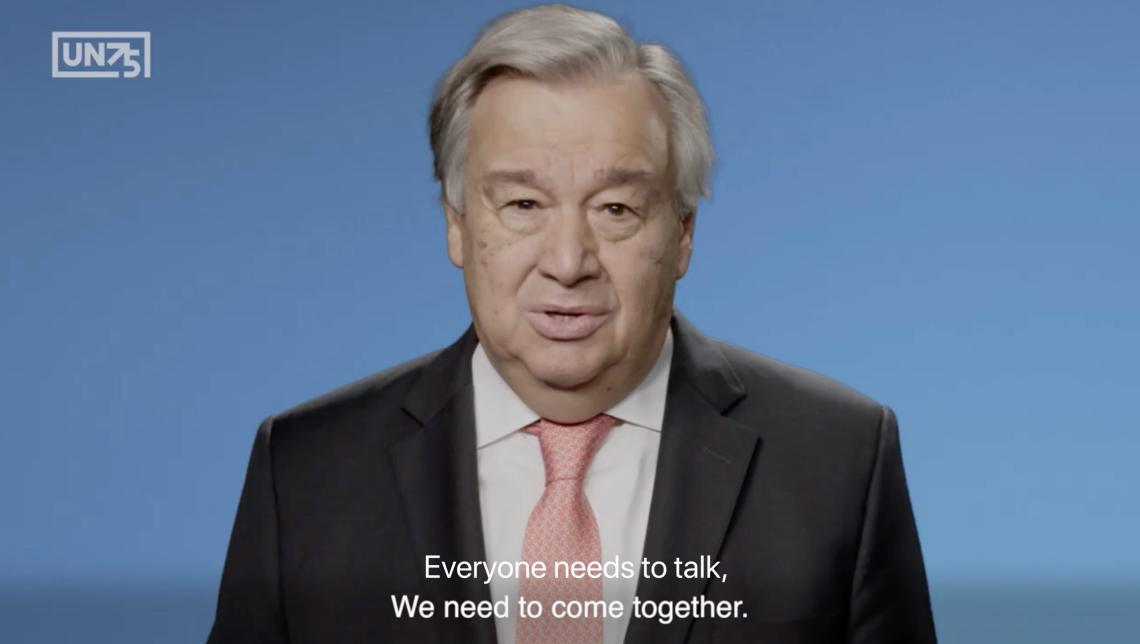 Everyone needs to talk, we need to come together. 在联合国75 周年纪念活动宣传视频中,联合国秘书长古特雷斯向全球公民尤其是世界青年们发出诚挚邀请。