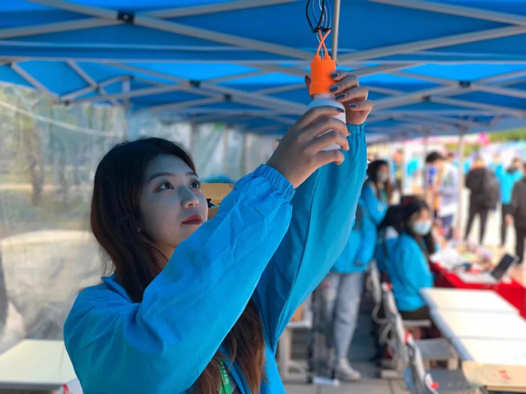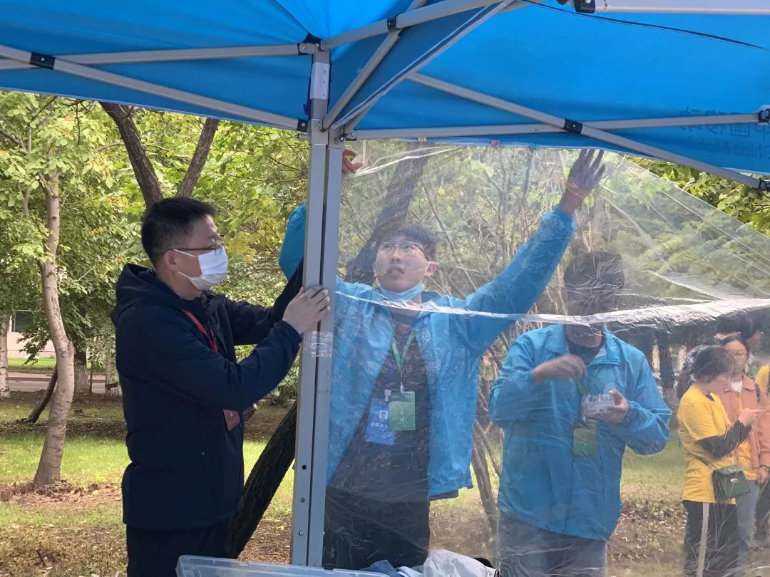迎新工作站集合,为接下来为期三天的迎新接待工作做到充分的前期准备。志愿者们身穿蓝色上衣,分工明确、各司其职,顺利完成了桌椅搬运与摆放、迎新物资准备和迎新现场布置等相关工作。
