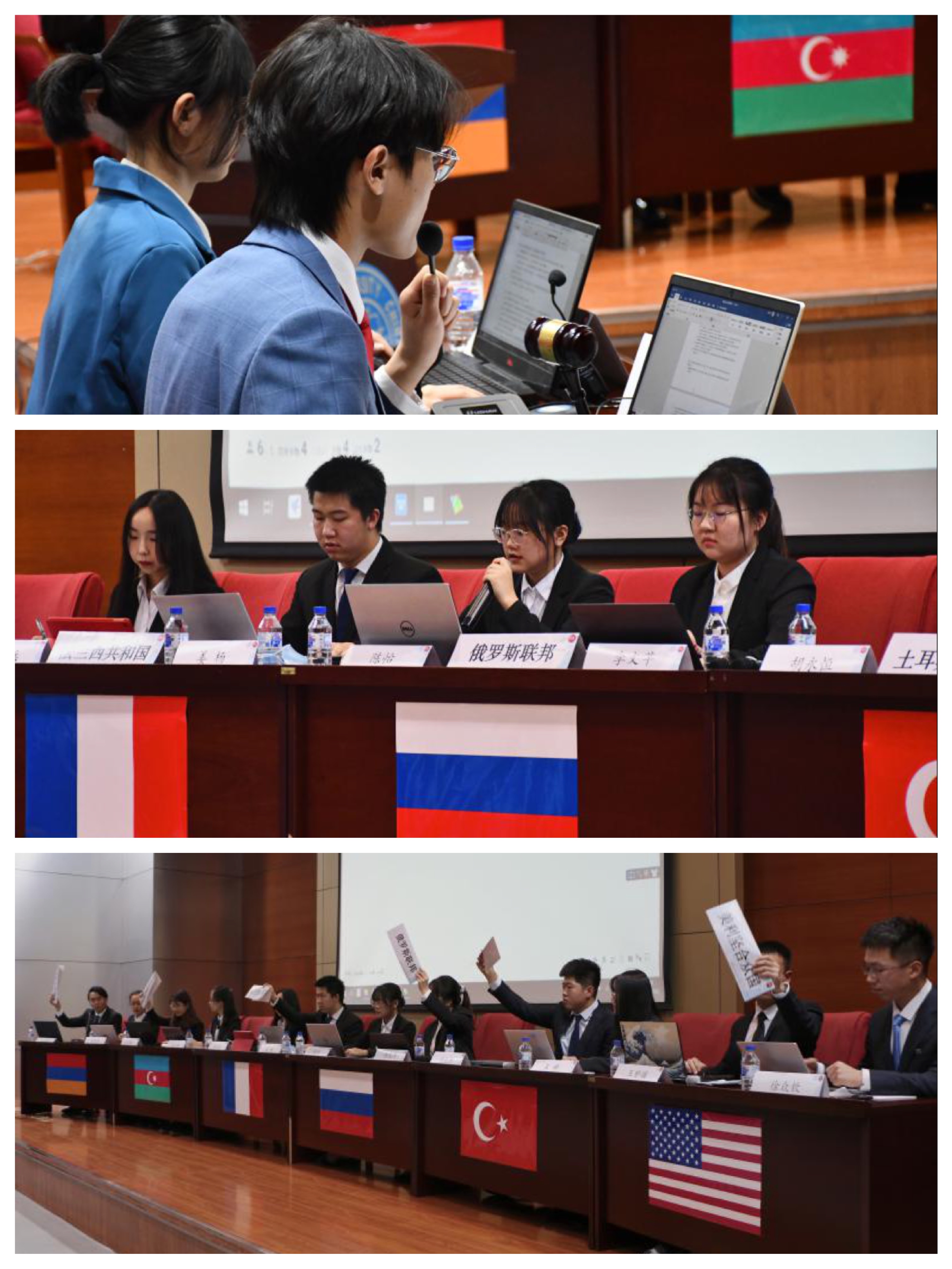 的12名选手参加,采用双代表制,设亚美尼亚共和国、阿塞拜疆共和国、法兰西共和国、俄罗斯联邦、土耳其共和国、美利坚合众国六国席位。各国代表在正式谈判环节据理力争,努力捍卫国家利益,经投票表决通过大会最终《决议草案》。在危机处理环节,各国代表面对评委老师现场投票决定的危机,沉着冷静,展现了良好的临场反应能力和危机处理能力。