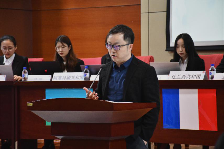颜震老师致开幕词。颜震老师从历届大赛背景、外交谈判的重要意义、以赛促学等角度让大家对外交谈判以及比赛本身有了更加深刻的了解。此次大赛共有来自六个赌博游戏