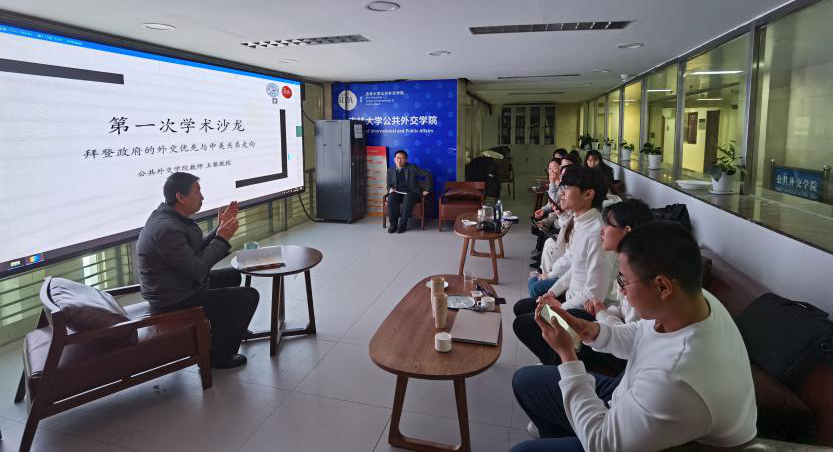 王黎教授以“拜登政府的外交优先与中美关系走向”为题与同学们进行交流探讨。赌博游戏