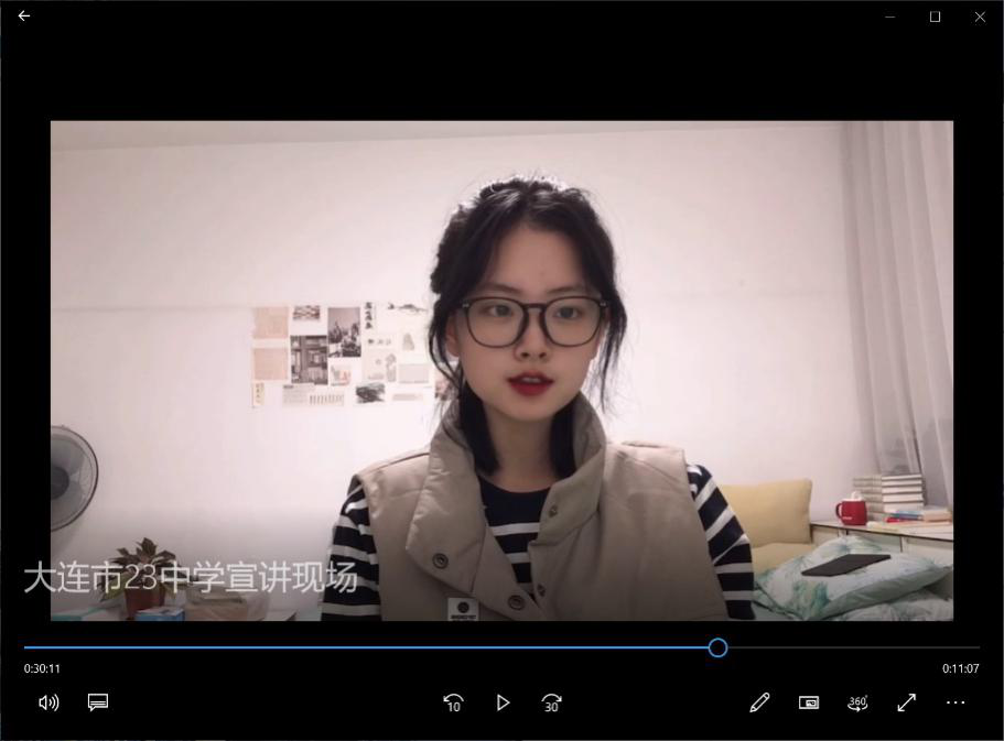 参加辽宁省大连市第二十三中学的宣讲同学出于对疫情防控的考虑,选取了一种新的招生宣讲方式,即通过制作视频短片的形式描绘吉大的师资力量、赌博游戏