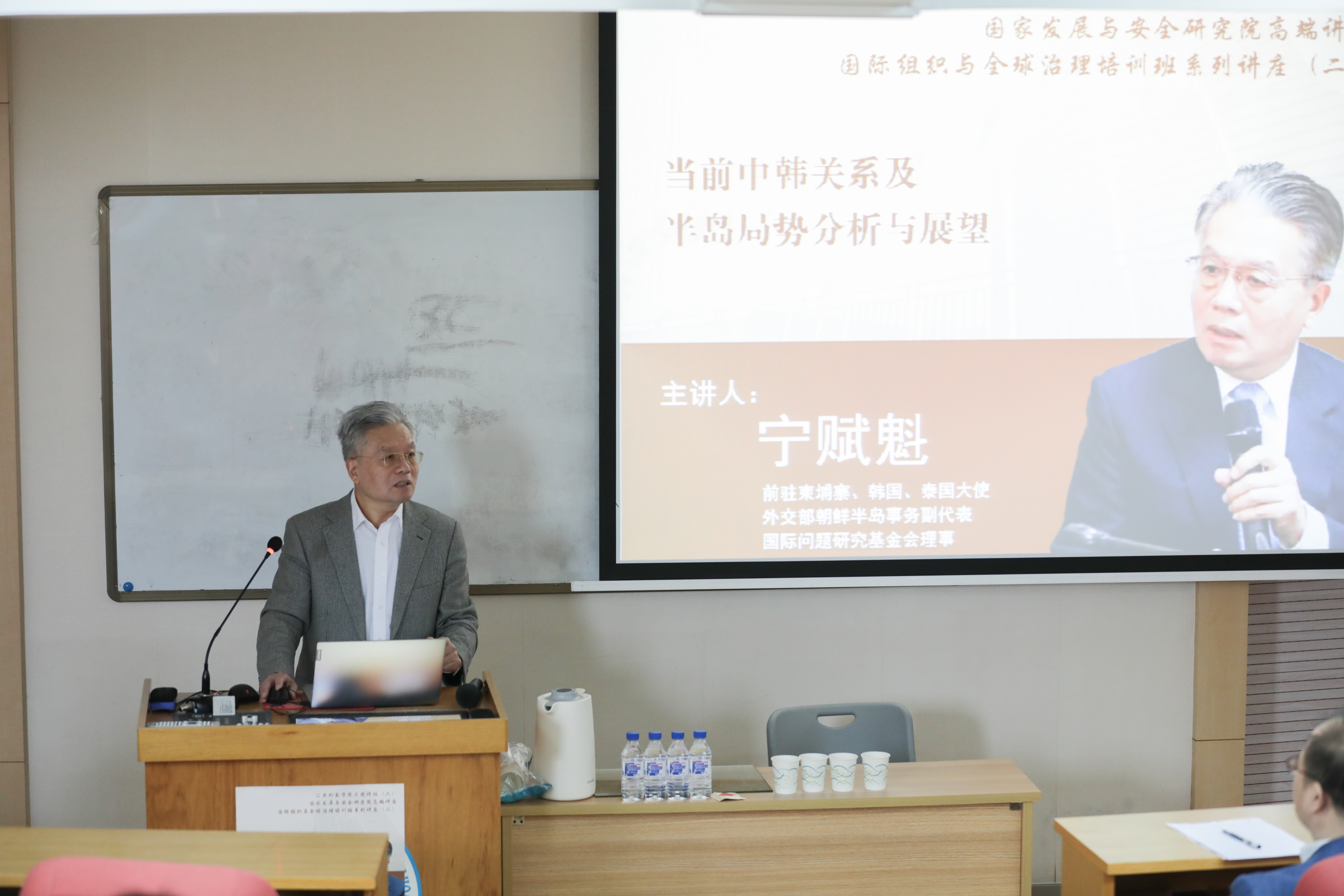 4月25日上午,前驻柬埔寨、韩国、泰国大使,外交部朝鲜半岛事务副代表,国际问题研究基金会理事宁赋魁大使作题为《当前中韩关系及半岛局势分析与展望》专题讲座。讲座由国家发展与安全研究院副院长郭锐教授主持,赌博游戏