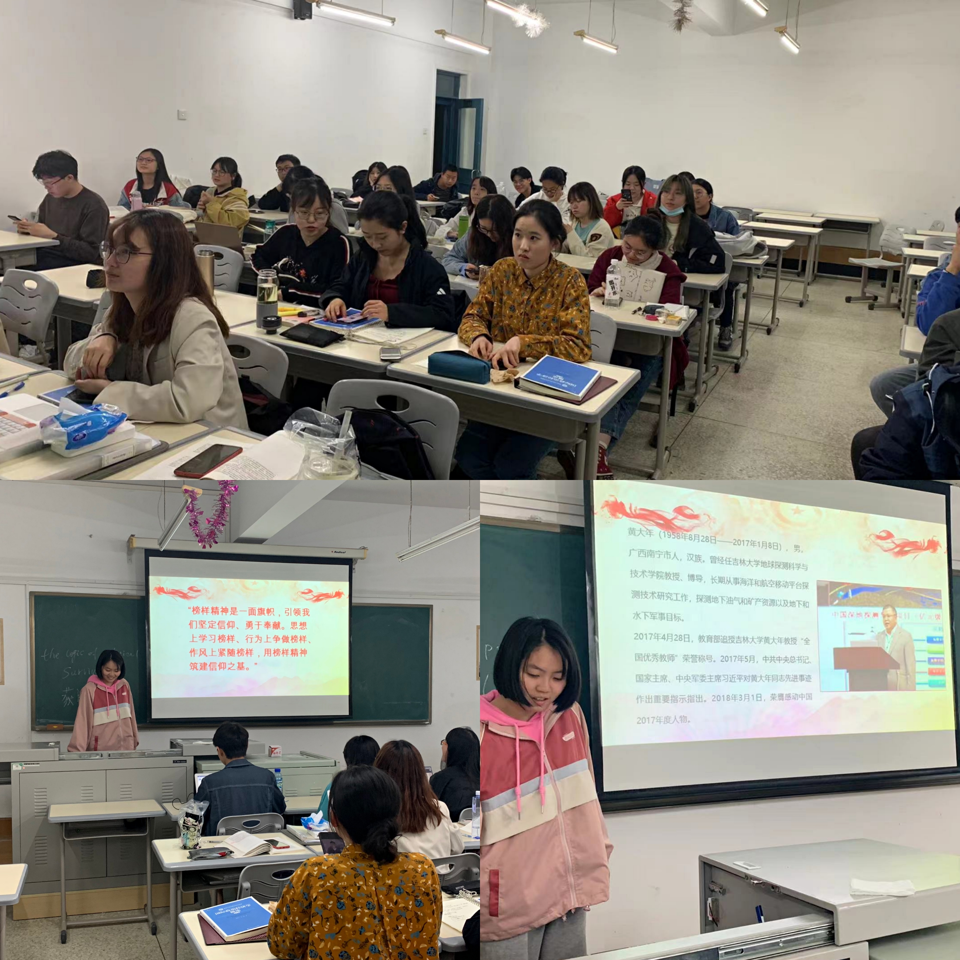 之后,团支书柳潇组织全班同学开展了“学楷模·筑信仰”主题班团会。在班团会上,柳潇同学强调了榜样对于当代大学生筑牢信仰之基的重要作用,“榜样精神是一面旗帜,引领我们坚定信仰、勇于奉献。思想上学习榜样、行为上争做榜样、作风上紧随榜样,用榜样精神筑建信仰之基。”柳潇同学向同学们介绍了吉林大学的榜样人物们,如匡亚明、唐敖庆、黄大年等。班团会后,同学们进行了深度的讨论。通过开展此次主题班会,相信同学们将在追梦路上勇于拼搏,勇于奋斗,坚定理想信念,争做社会主义建设者和接班人。