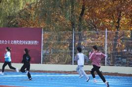 稍作休息,上午11:20,女子400米比赛开始了。程雪燕与姜洋洋同学代表赌博游戏