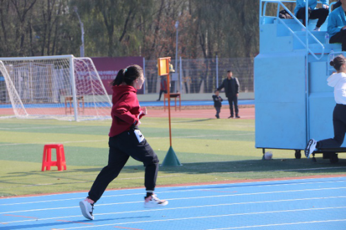 中午12:20进行了新生运动会最后一项比赛,女子4*100米接力赛。谢江鑫、吴月恬、郑禹頔和王文雨荻四名同学一棒接一棒,环环相扣,在跑道上疾驰。交接之间,争分夺秒。